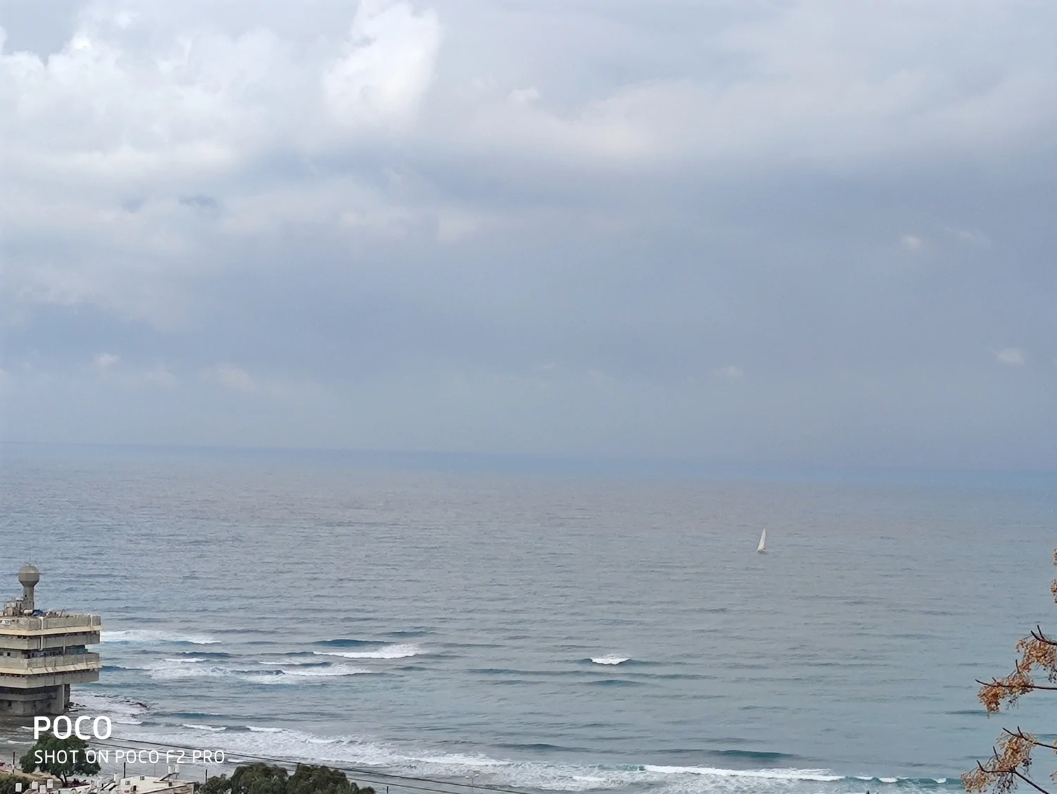 - זה המצב בחיפה. עננים בים. הים שקט. ארץ ישראל היפה