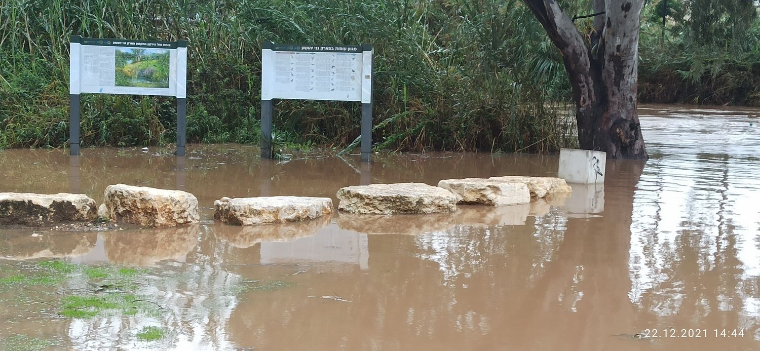 המידשאות בצידי הירקון הוצפו וכוסו במים