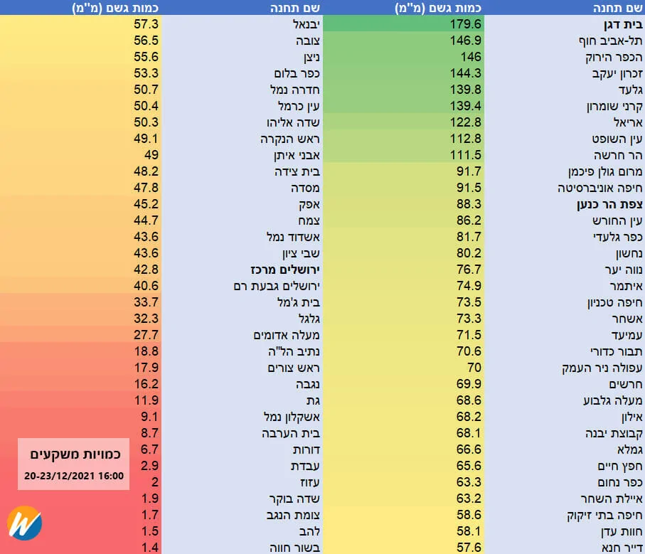 - טבלת המשקעים - סערת "כרמל" במספרים Weather2day