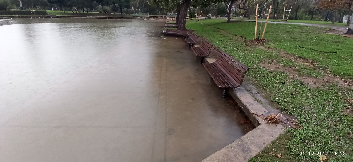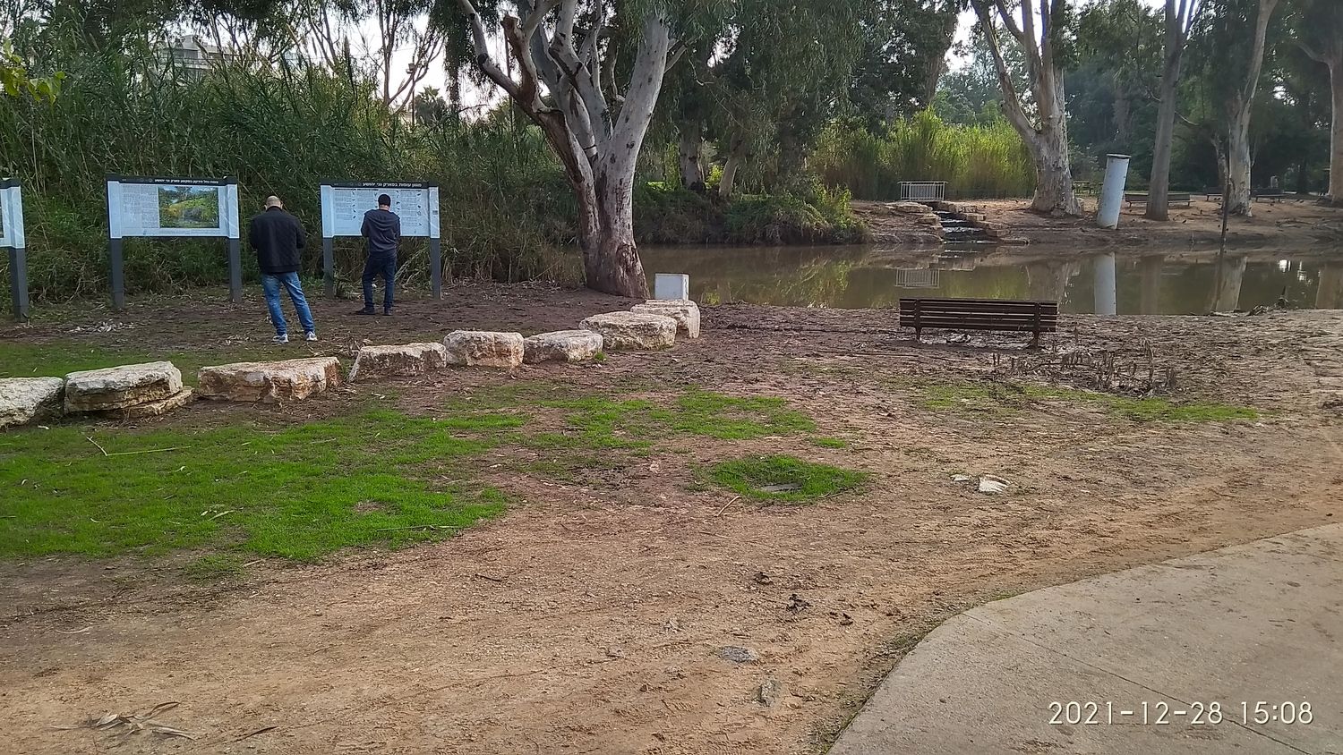 עדיין לא הורידו את הענפים כי עדיין לא נמצא המתנדב שיועיל בטובו ליכנס לבוץ שבמרכזו נמצא הספסל בכדי לשבת על הספסל ואז על הדרך גם לנקות אותו.