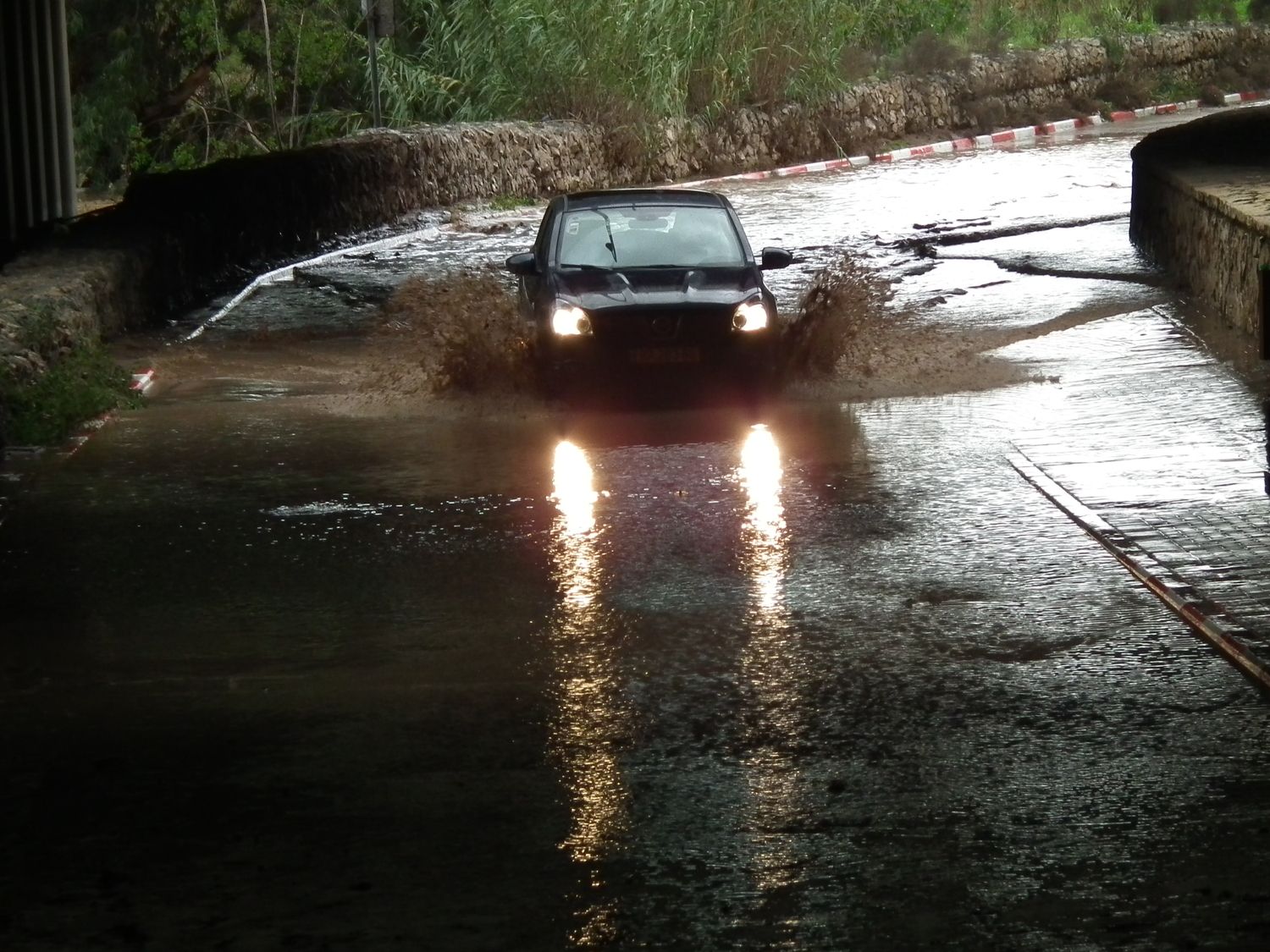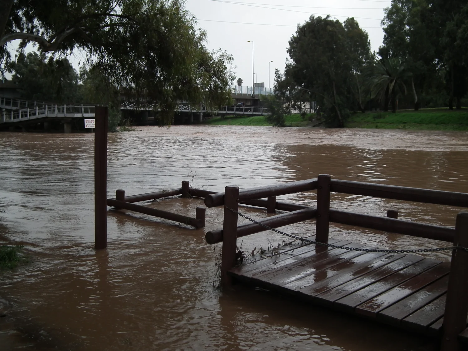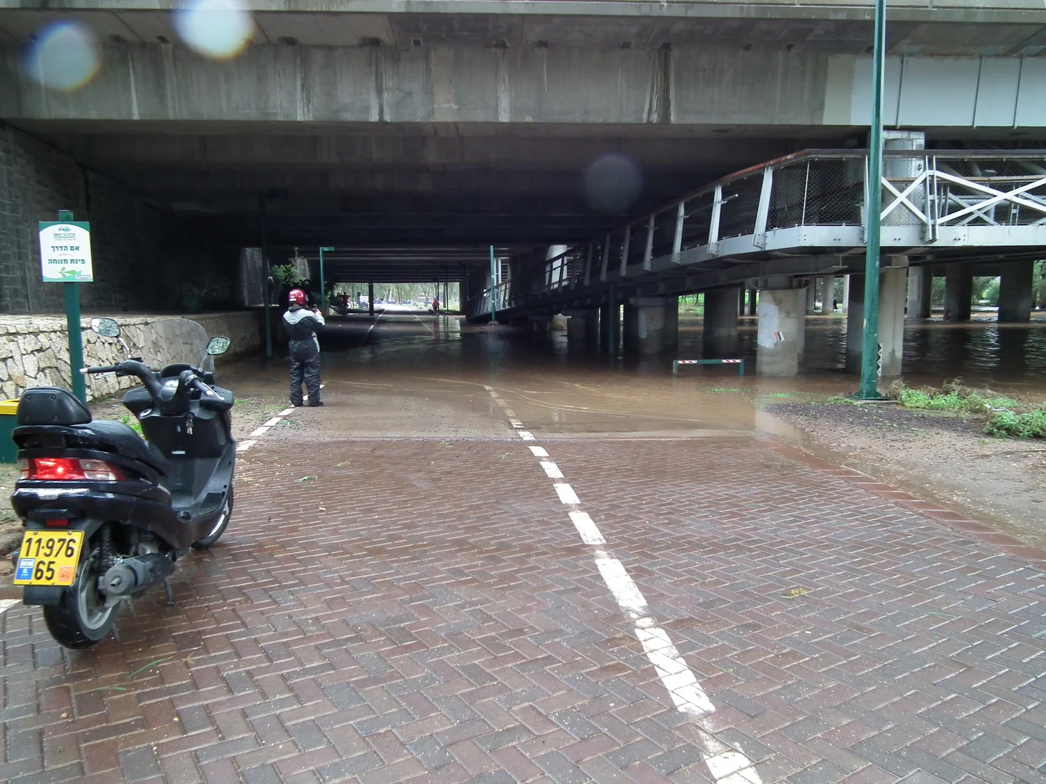 אז נתחיל בהצפה באיזור שבע טחנות לפני שבוע- והיום, ונתחיל מהסמל של ההצפה- הספסל הטובע.