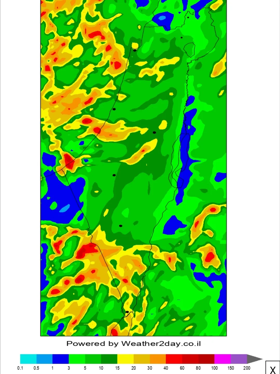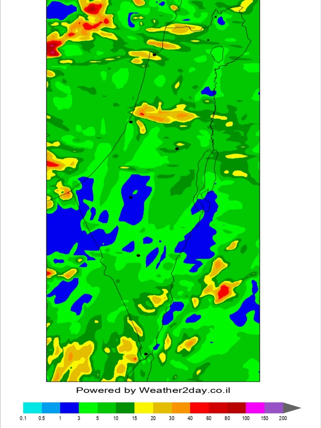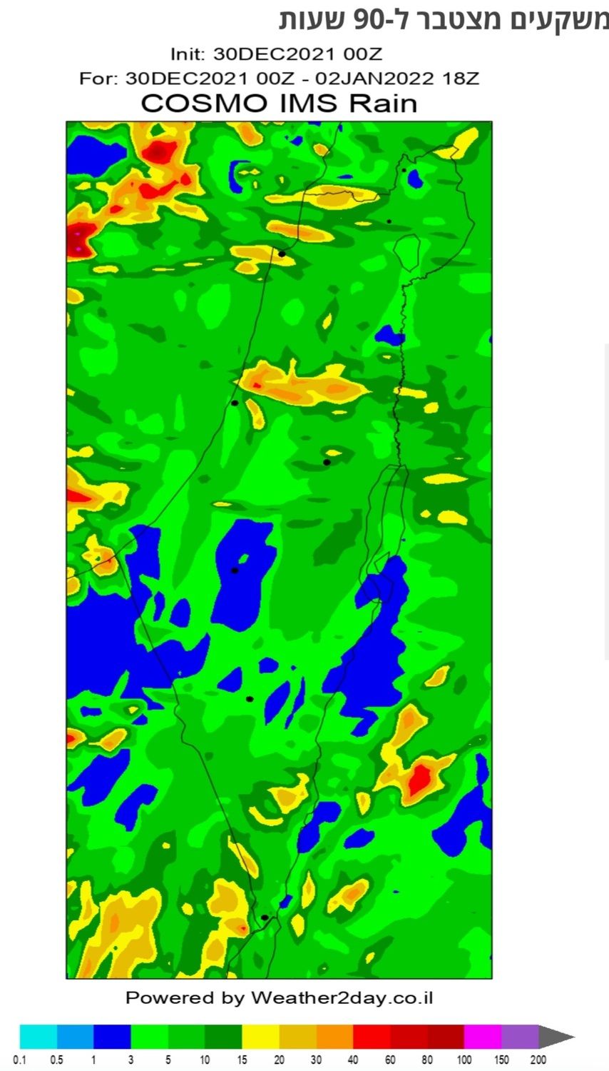 2. הגשמים ירדו מחיפה בצפון (מילימטרים בודדים) ועד פארן במרכז הערבה (0.1 מ"מ).