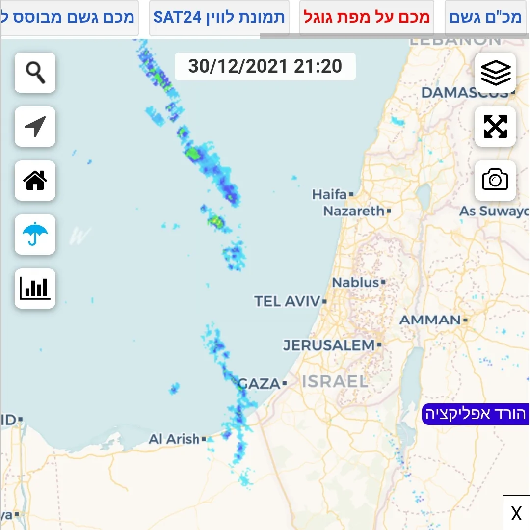 צפו בגליל המערבי לשעות אלו קצת גשם והמכ"ם ריק. גפס עם הרזולוציה הנמוכה שלו יותר קרוב למציאות...