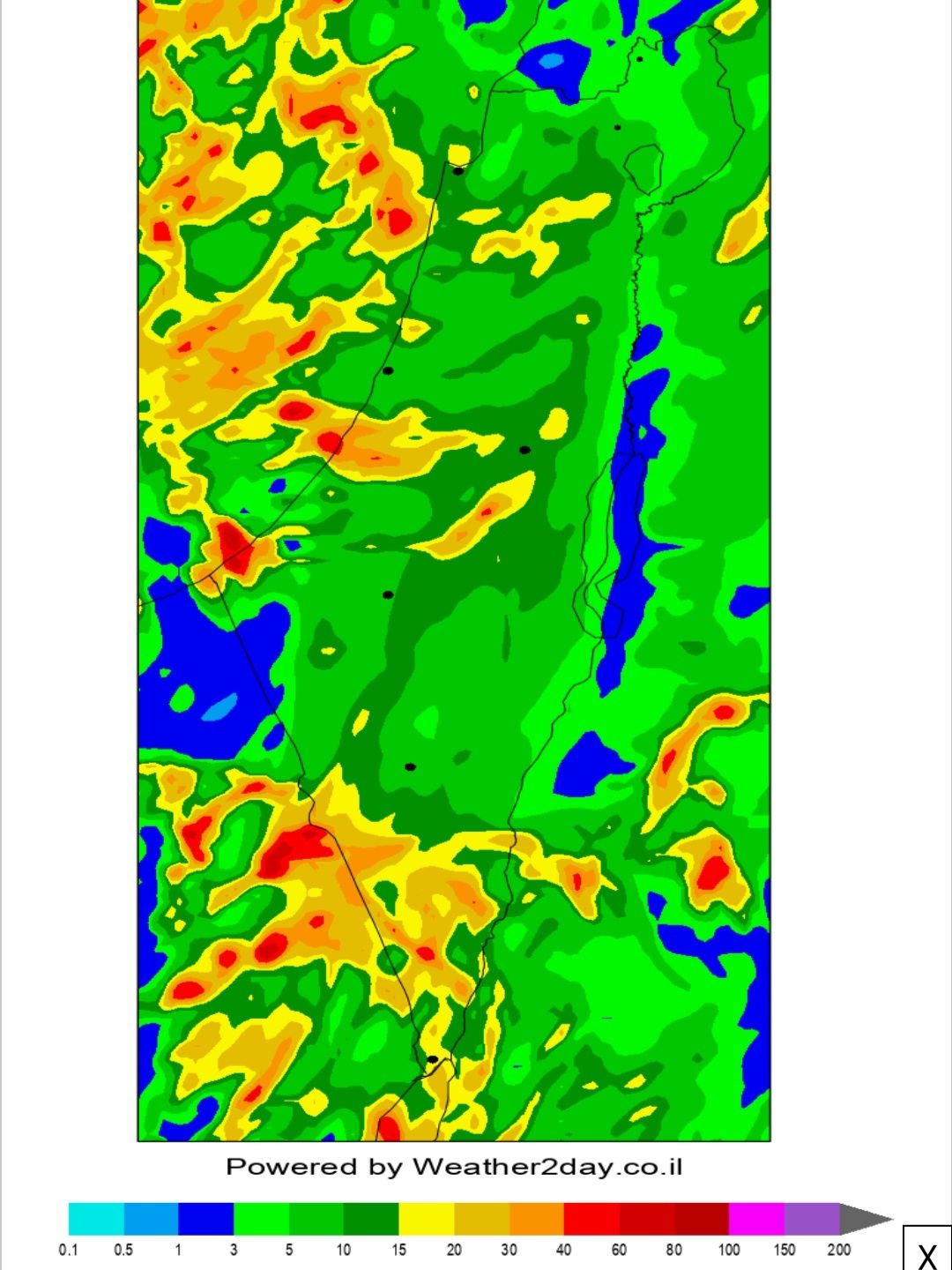 תחסית למערכות גשם המרכז ובדרום כמעט תמיד ללא
