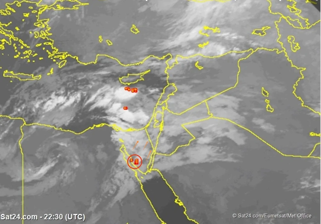 בנתיים - התפתחות סופות רעמים בדרום סיני