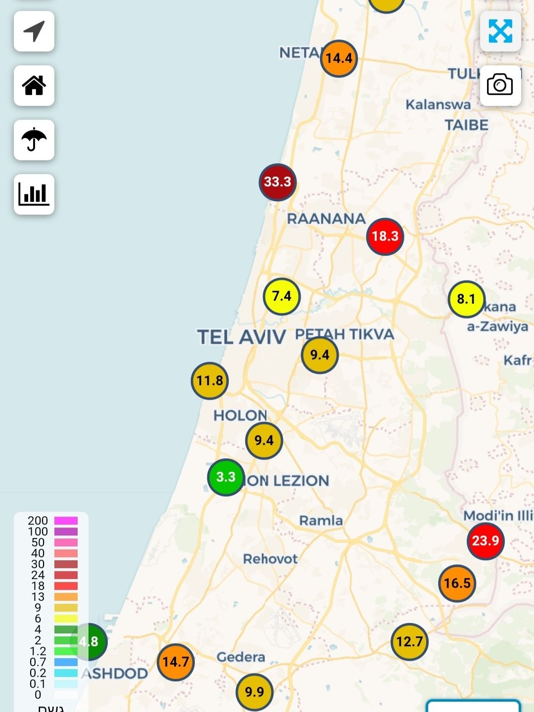 ולפי התחנות הפרטיות גם מערב ראשון וכנראה גם חולון שעברו כבר את 400 ממ