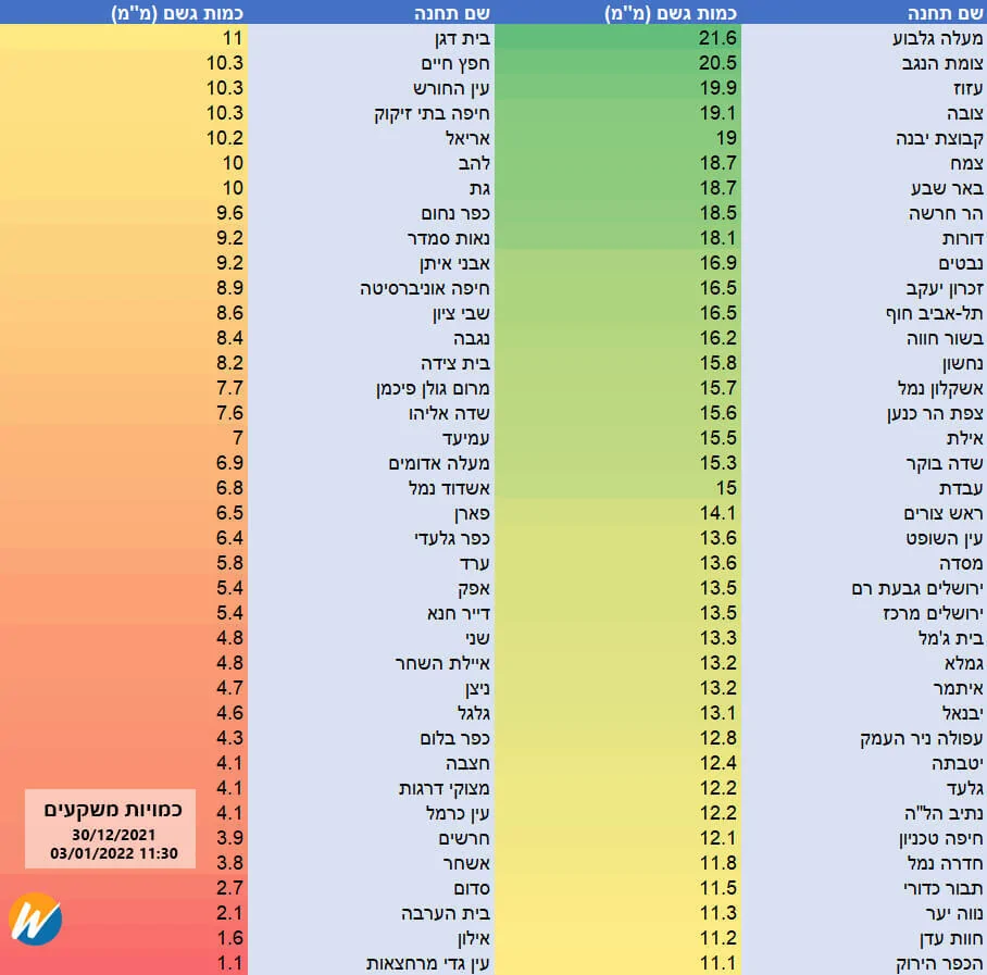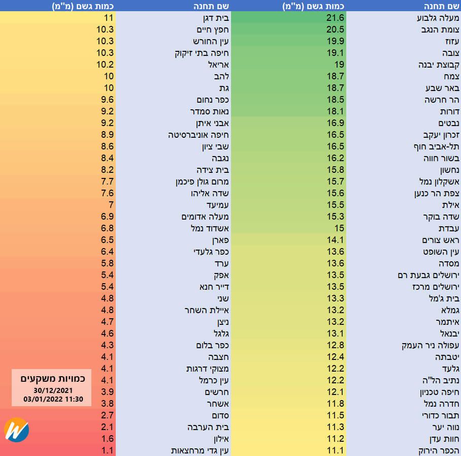 - כמויות משקעים - יום שנ י 3/1/2022 חנוך א
