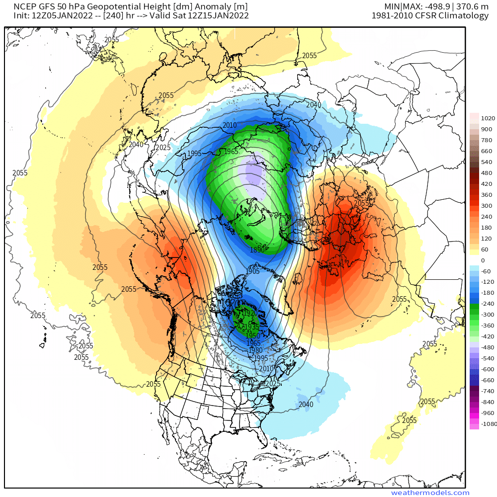 גם באיור השני הטמפרטורה בלחץ 500 היא 1- עד 1.5- . אוהבי שלג יסיקו מכך שהנה השלג מגיע.