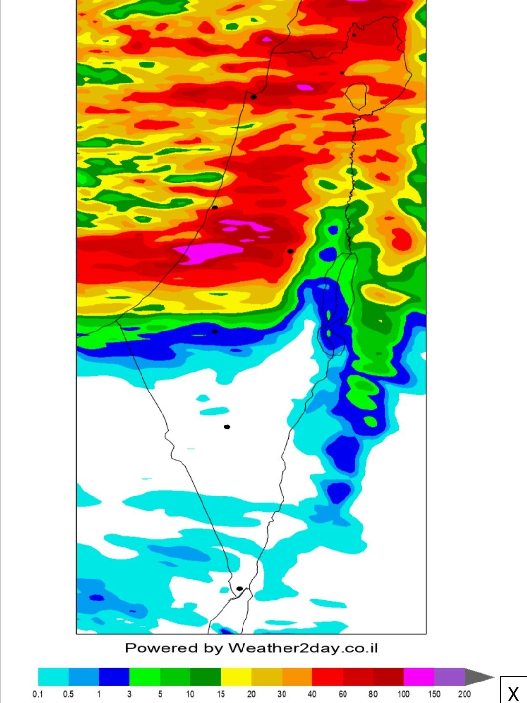 - צפי משקעים מהמודלים המובילים Weather2day