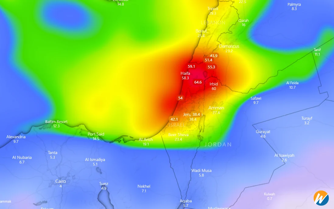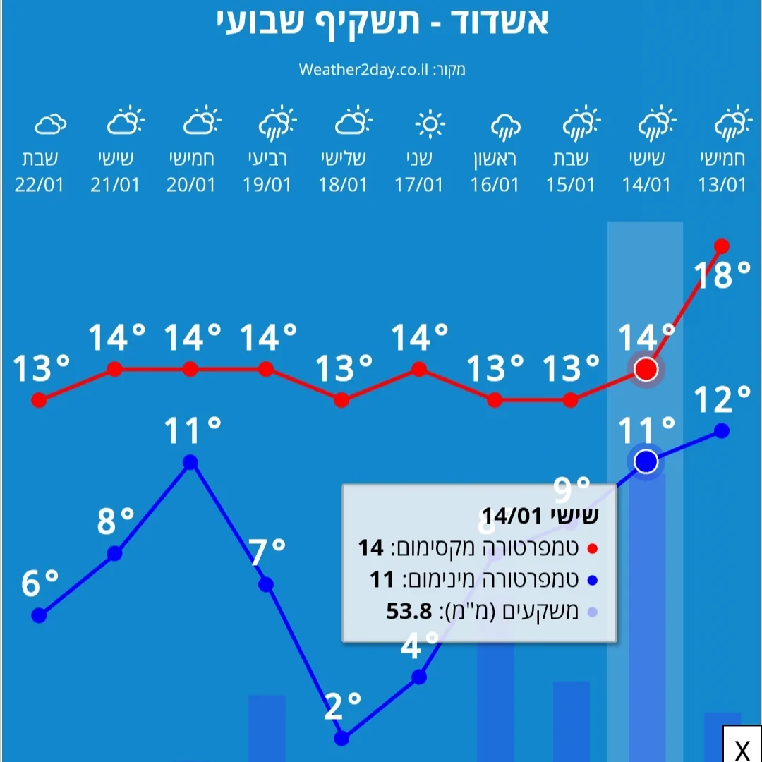 צפי של 150 מ''מ עד שבת בערב בין אשדוד ואשקלון
