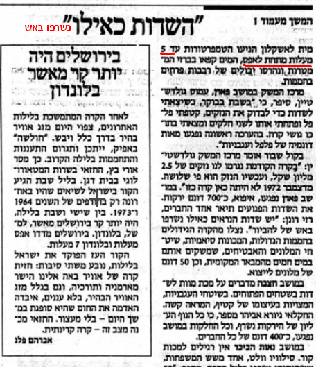 קראתי הרגע את העיתון מהבוקר למחרת ולפיו נמדדו מינוס 5 מעלות בקרבת אשקלון. לפי מה שאני זוכר עבדת בתקופה ההיא בעוטף עזה. אני מצרף תמונה מאותו עיתון, תודות לספרייה הלאומית.