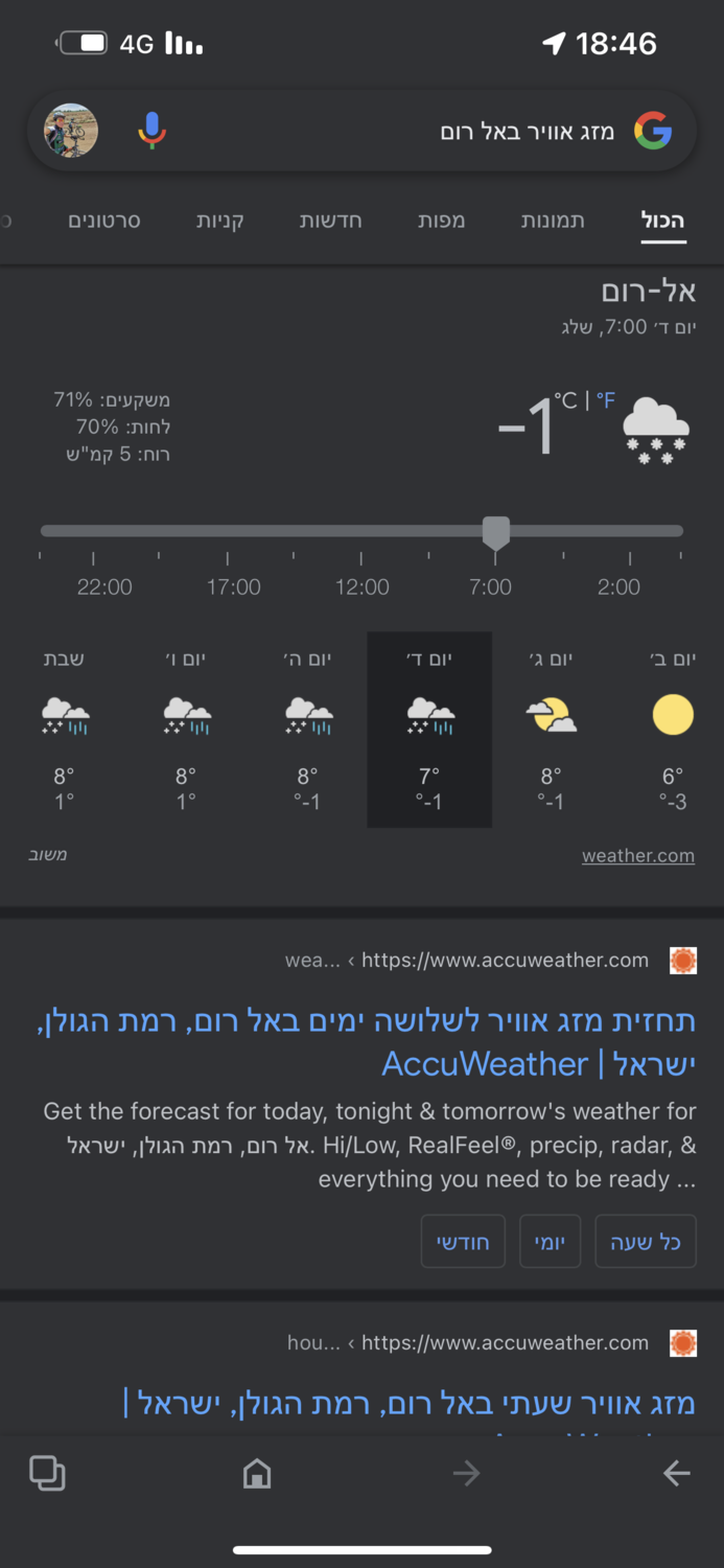 - האם מה שגוגל מציג זה נכון על השלג ברוב איזורי צפון רמת הגולן שבוע הבא נכון? עדי טולדנו