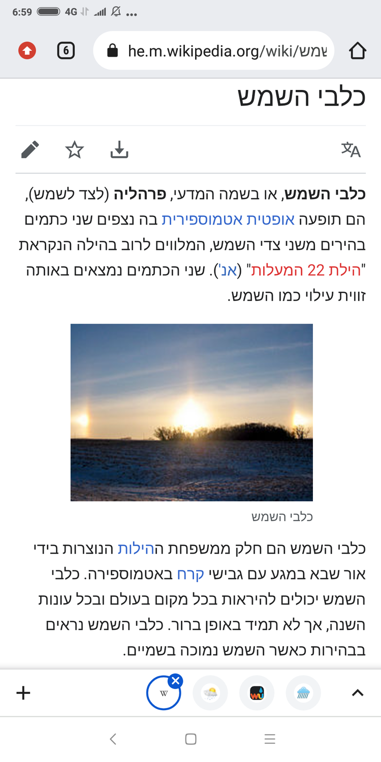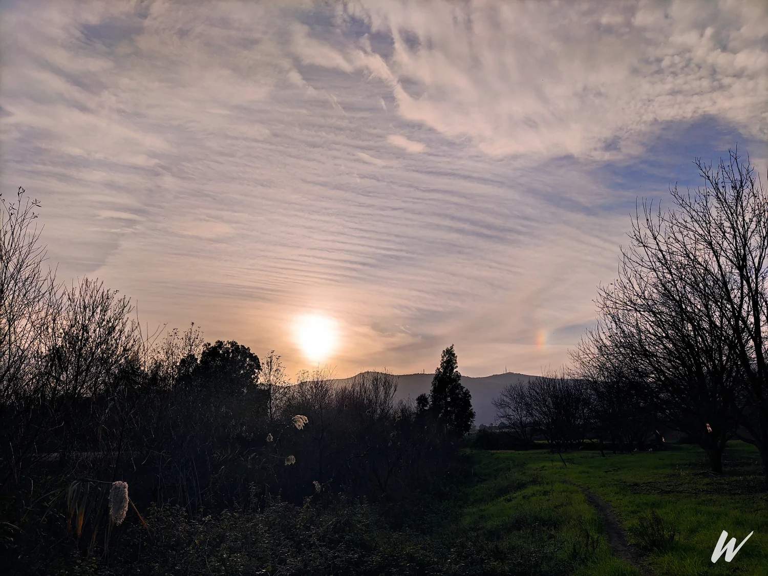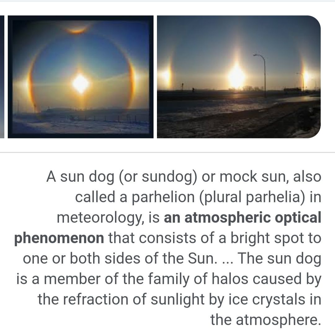 מה שרואים בתמונה היא תופעה אופטית אטמוספירית בשם "כלב שמש" או פרהיליון (מילה יוונית במקור). למי שלא מזהה, נקודה בצבעי הקשת מצד ימין של השמש.