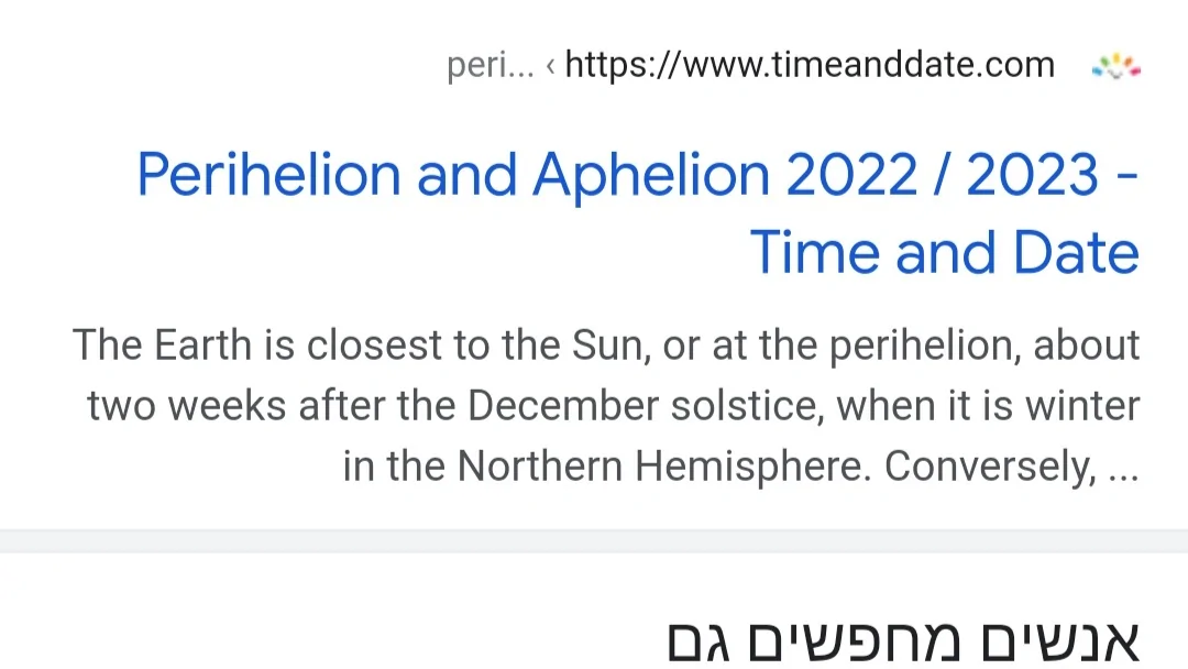 זו הנקודה בה כדור הארץ הכי קרוב לשמש. זה מתרחש כל שנה בתחילת ינואר (התאריך המדויק משתנה)