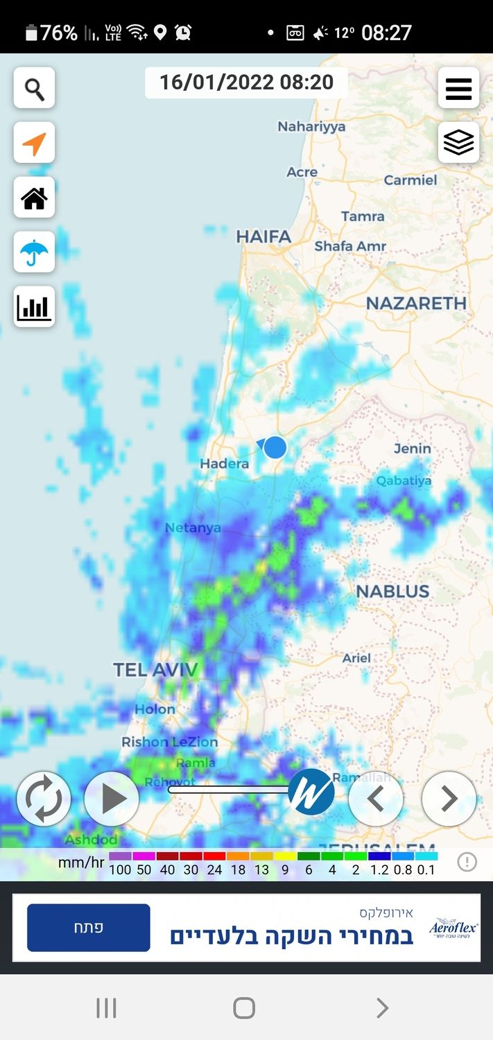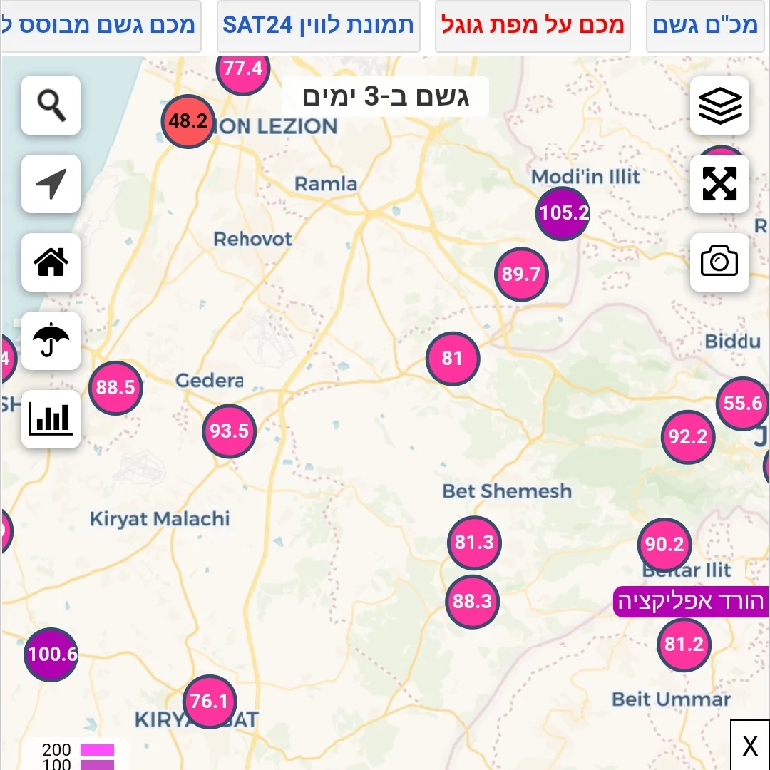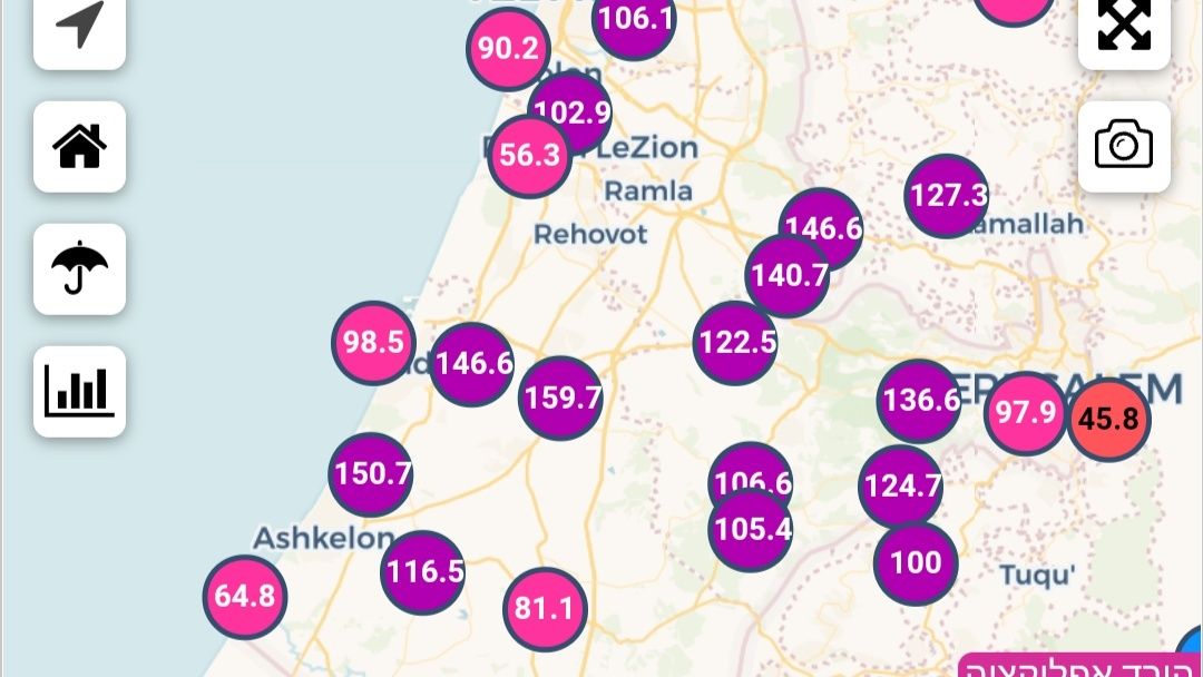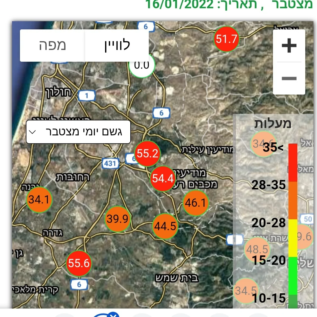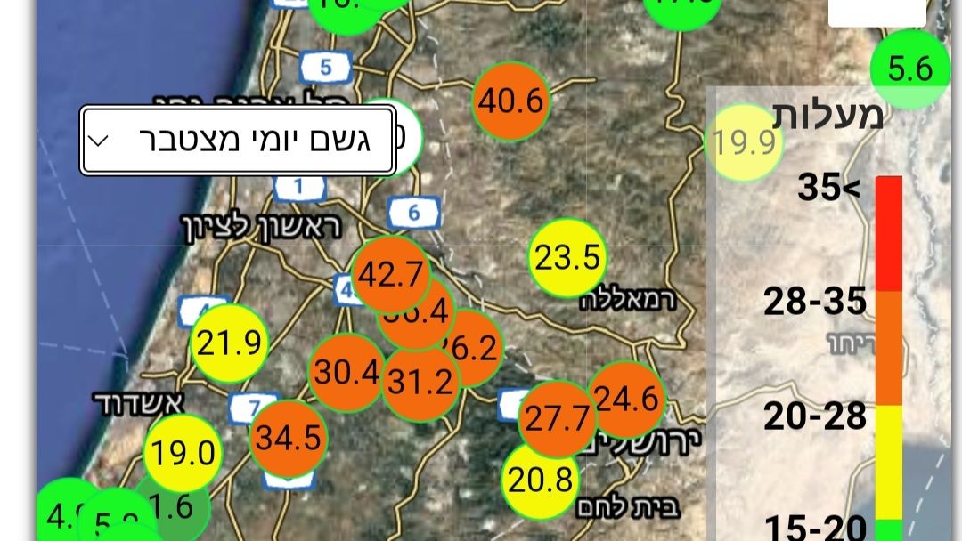 - לפי תחנה מטאורולוגית במודיעין ירדו כ-110 מ"מ עד שעה זו רמי