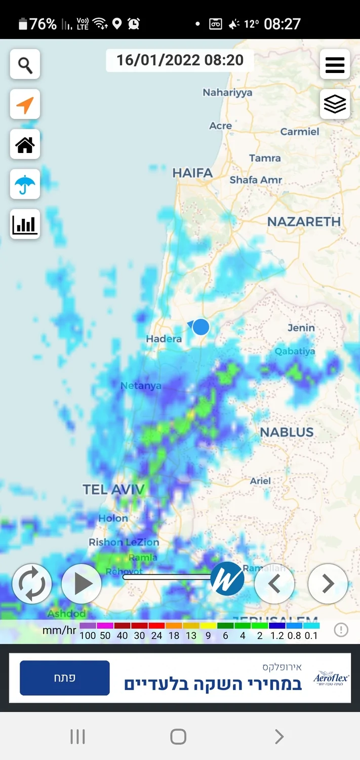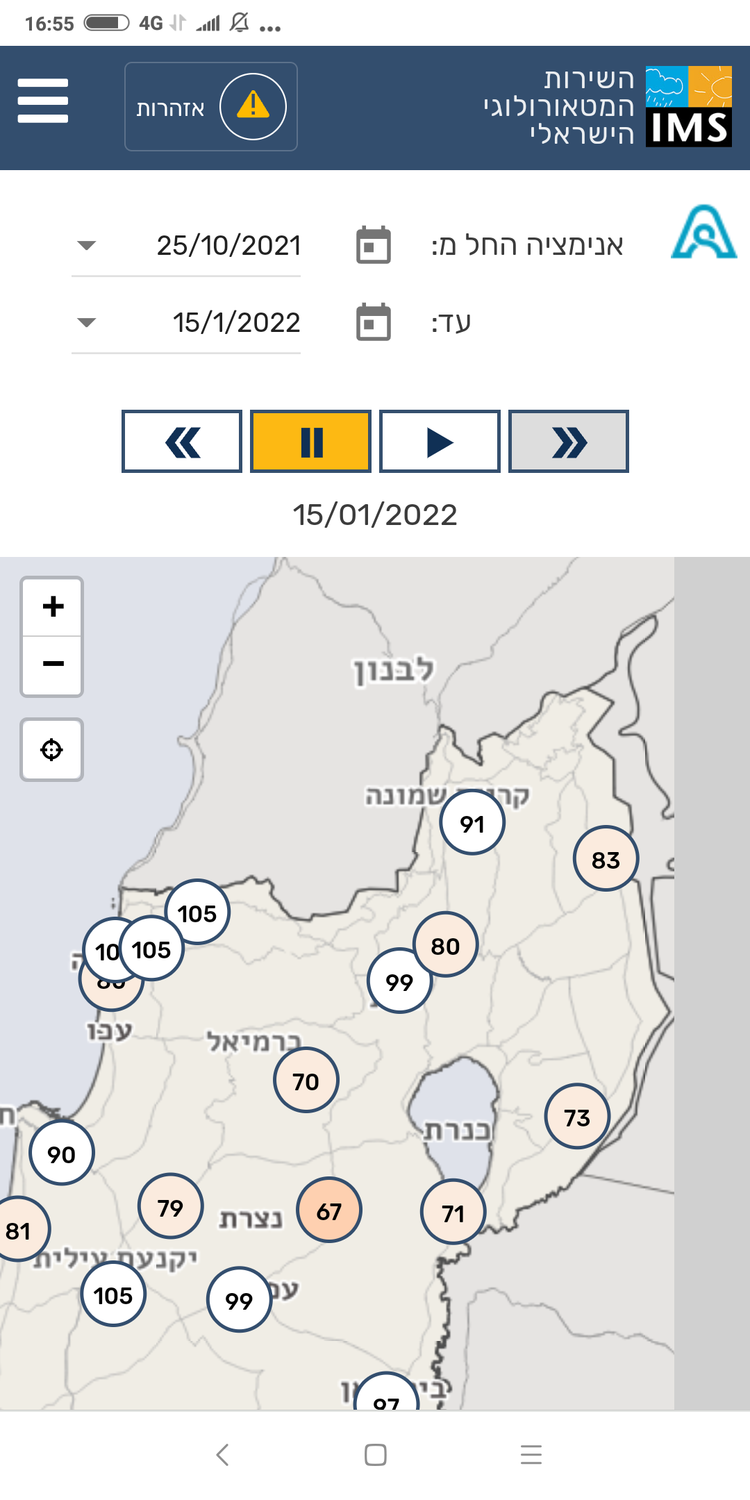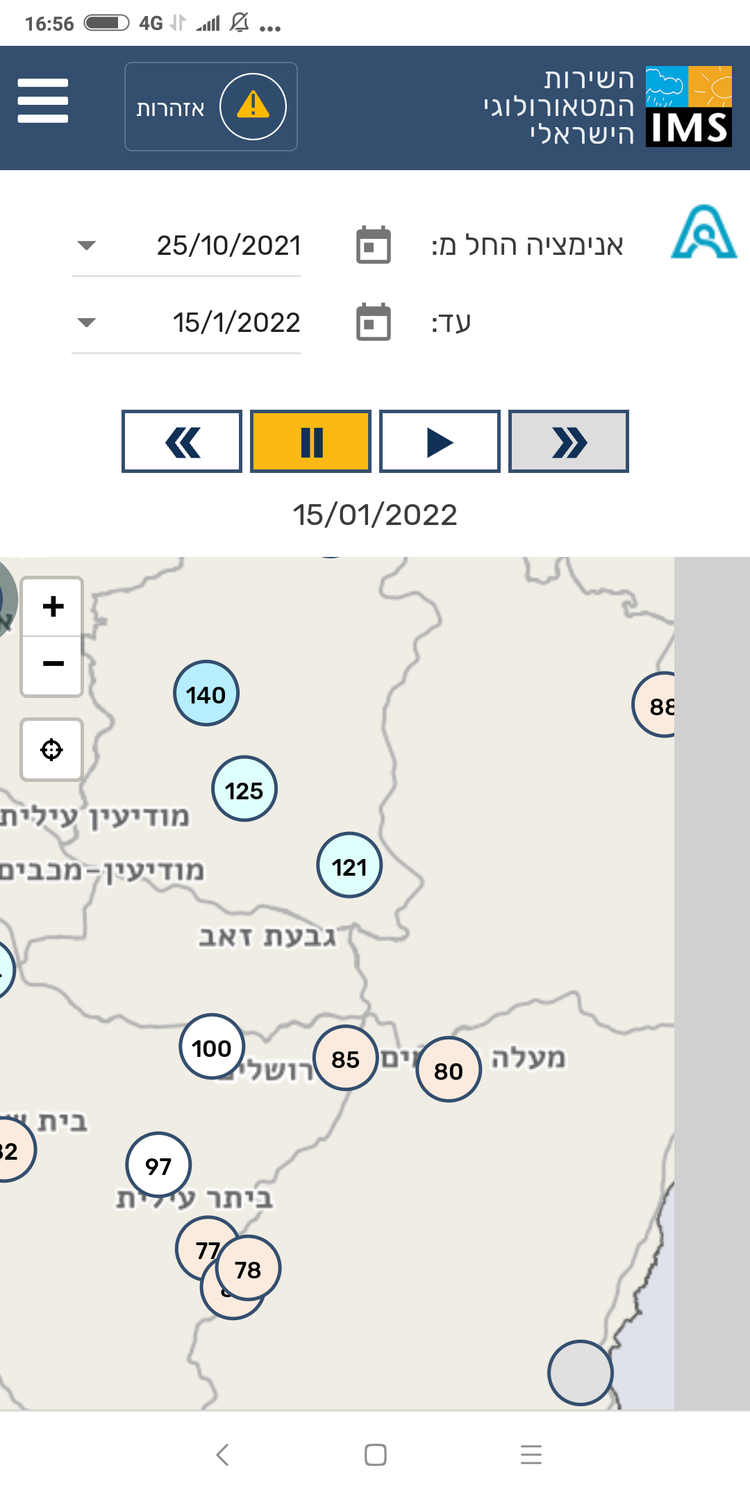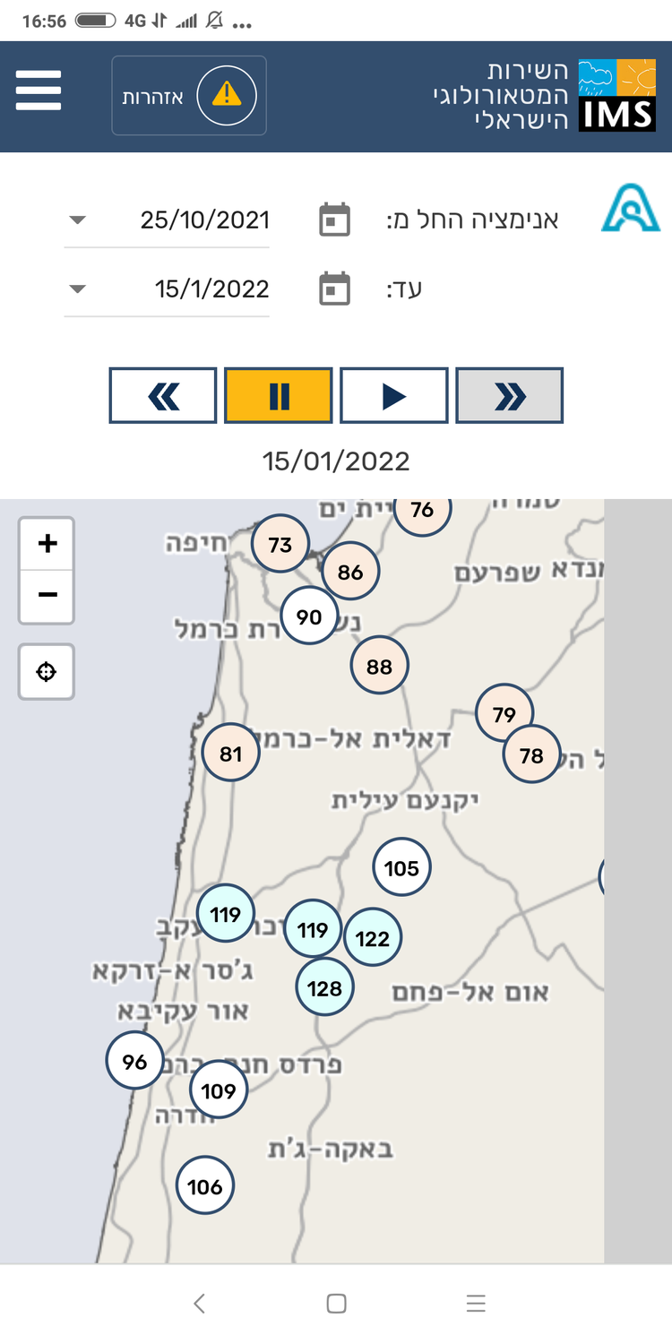- לפי תחנה מטאורולוגית במודיעין ירדו כ-110 מ"מ עד שעה זו רמי