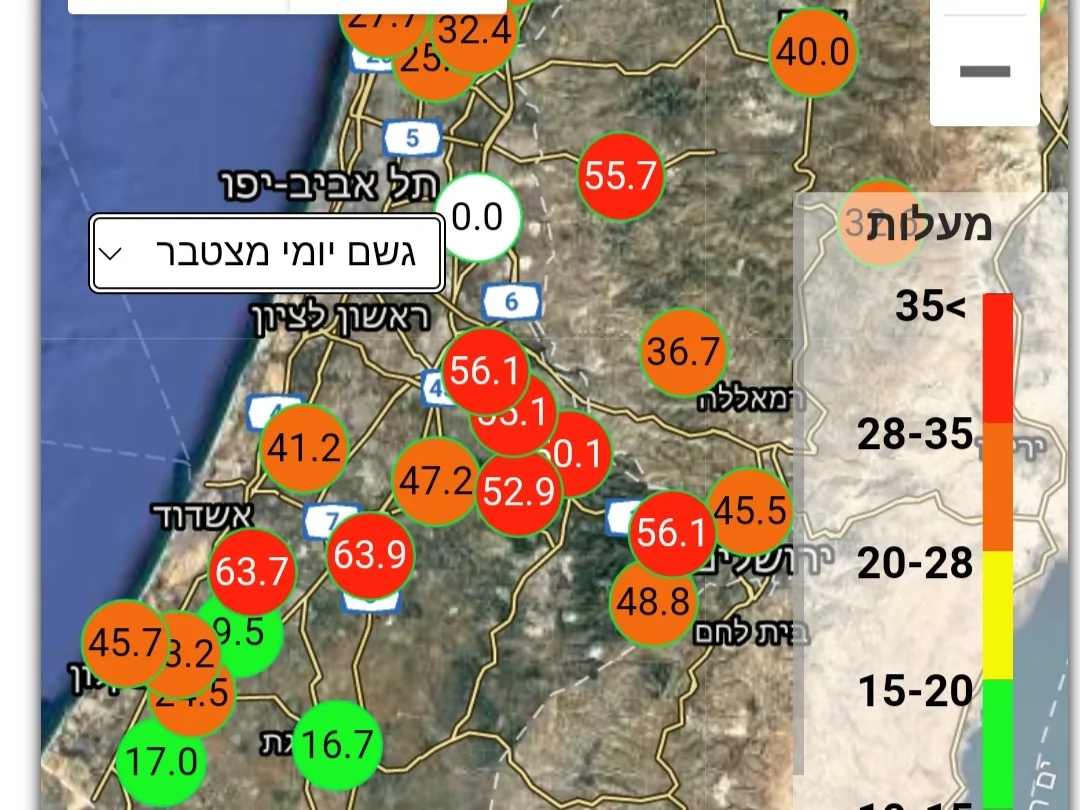 ועוד לא ציינתי את תחנת השמ"ט בראשל"צ שמודדת תמיד הרבה פחות מצמד התחנות הזה.