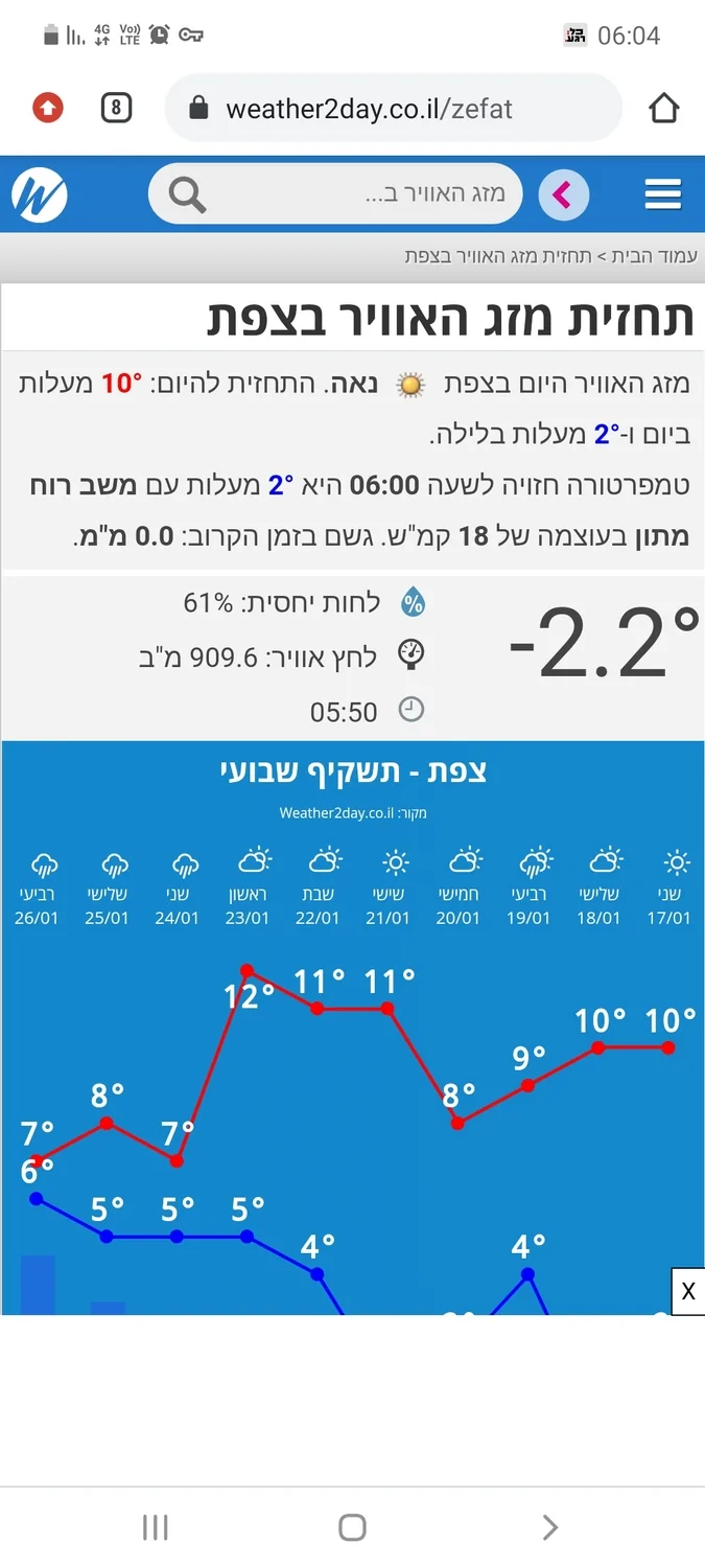 לעומת תחזית גוגל שחזתה טמפרטורת מינימום של 4 מעלות.