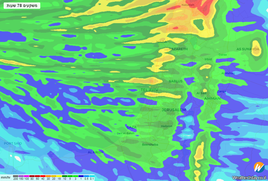 - צפי משקעים מעודכן, מודל קוסמו Weather2day