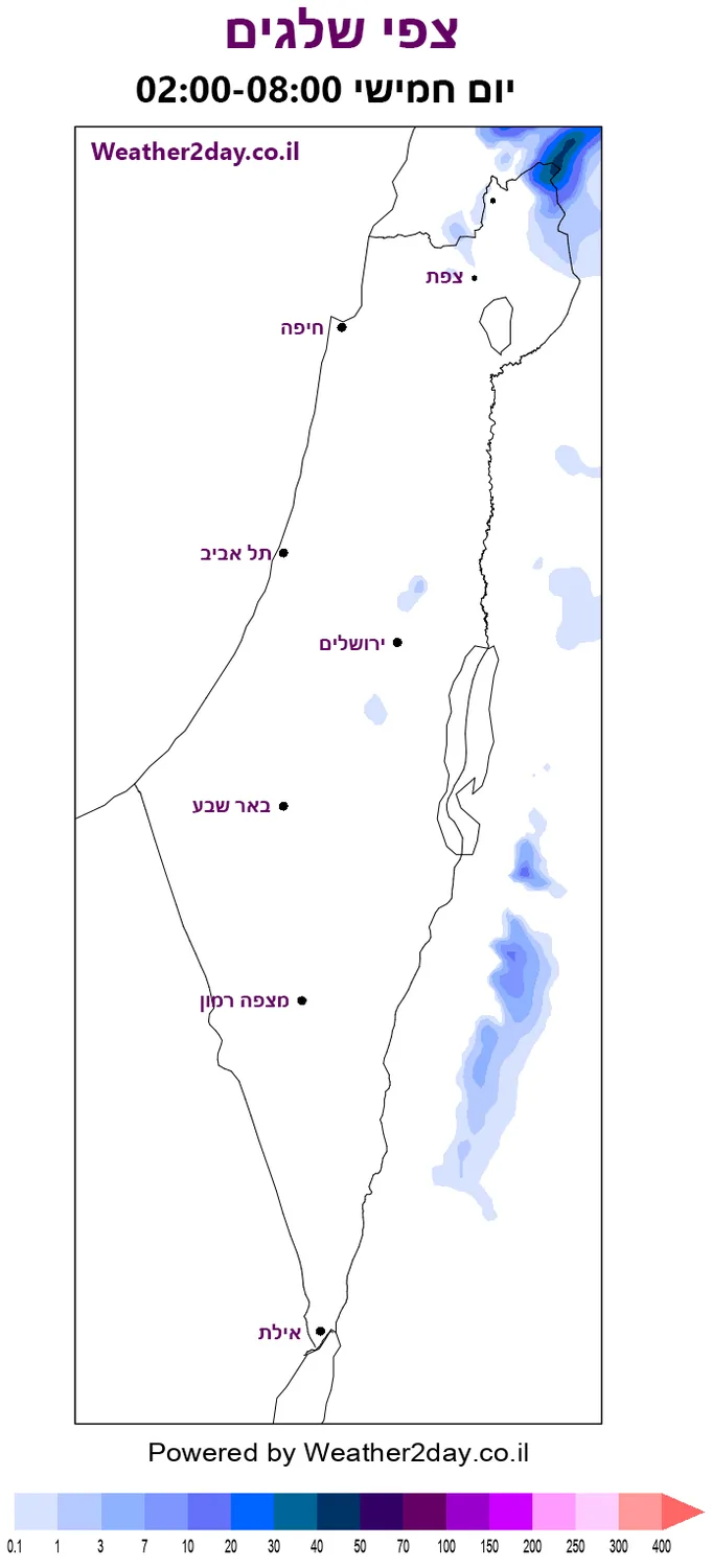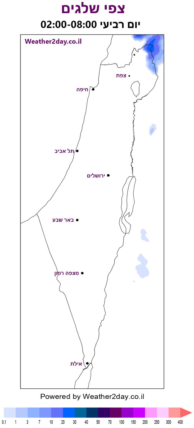 - צפי מודל השלג לפי שעות ביממה הקרובה Weather2day