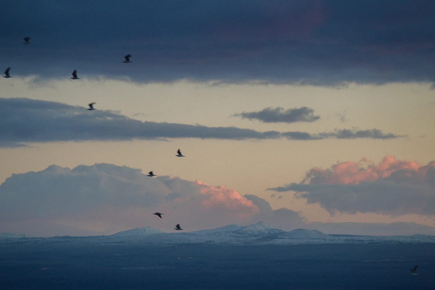 תמונה 1: ציפורים באו להוסיף לתמונה של הרי הגולן המושלגים