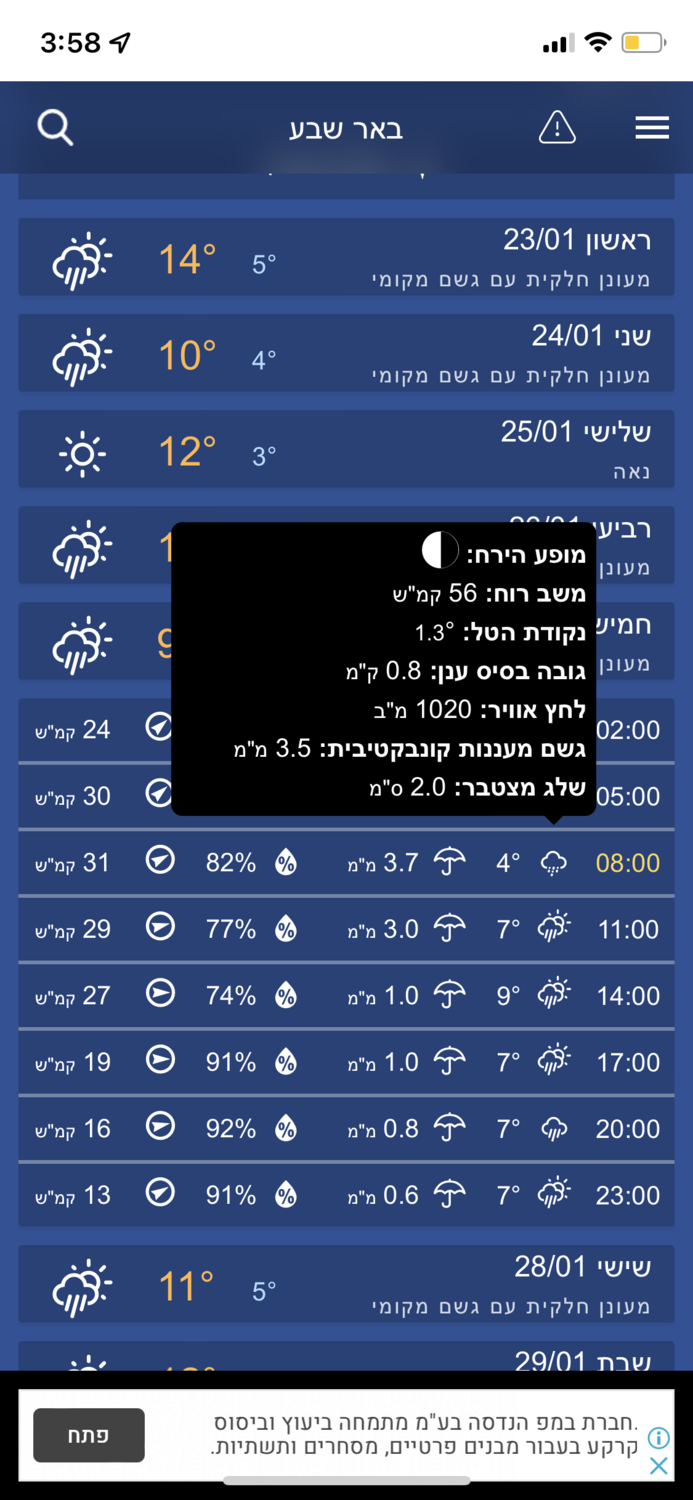 - לפי תחזית האתר נראה כי שלג בבאר שבע בחמישי הפועל