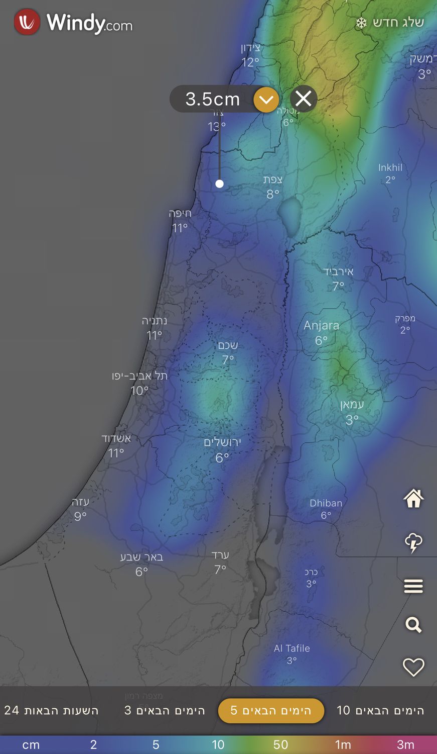שבוע שעבר תוך יומיים היו 120 מ"מ. וכאן 5 ימים מלאים רק 50 מ"מ