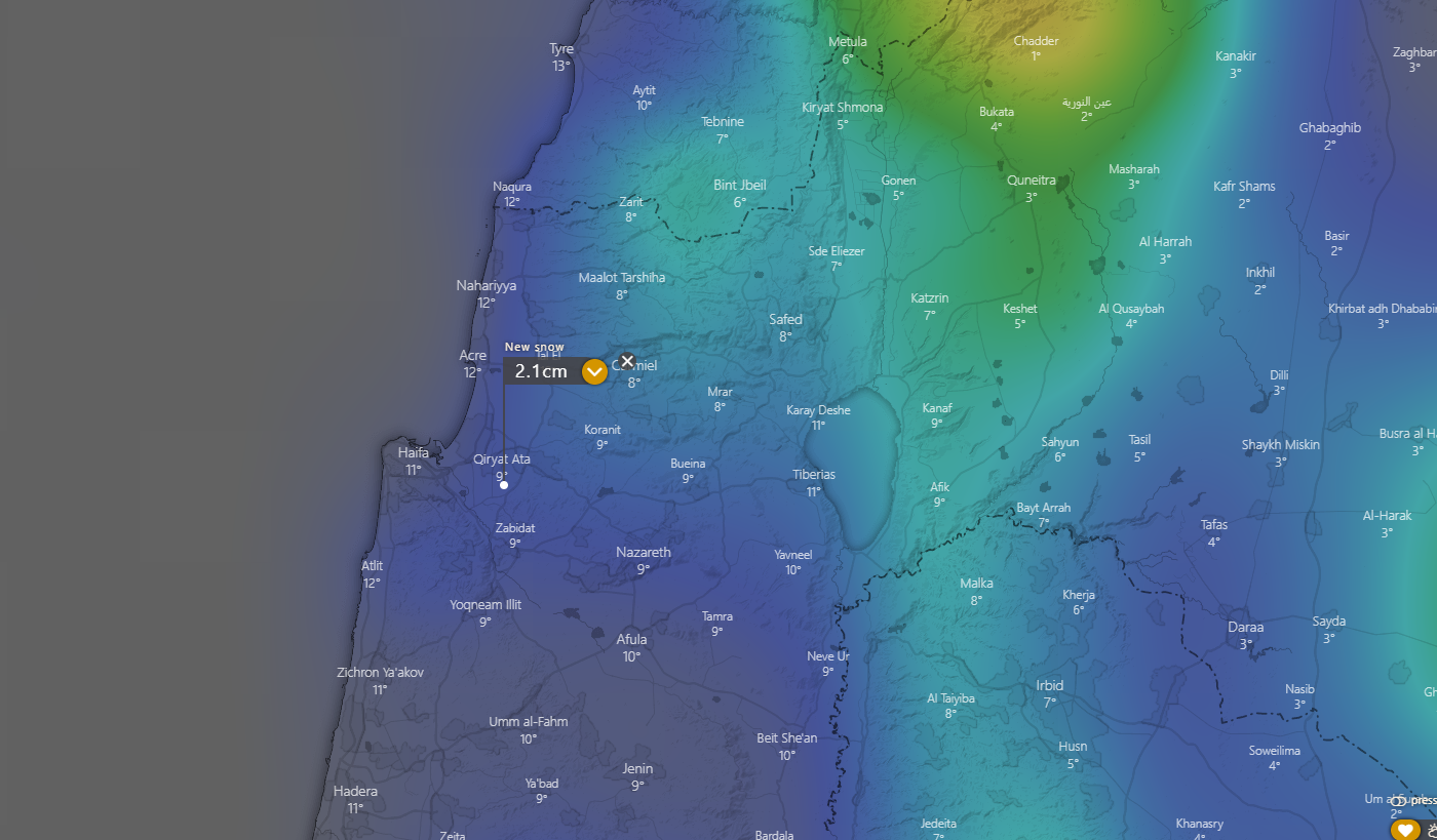 גפס צופה שמערכת השלג תהיה מזרחית עם כמויות אדירות ממזרח לחרמון וממזרח להר הלבנון. משהו מוזר בהחלט