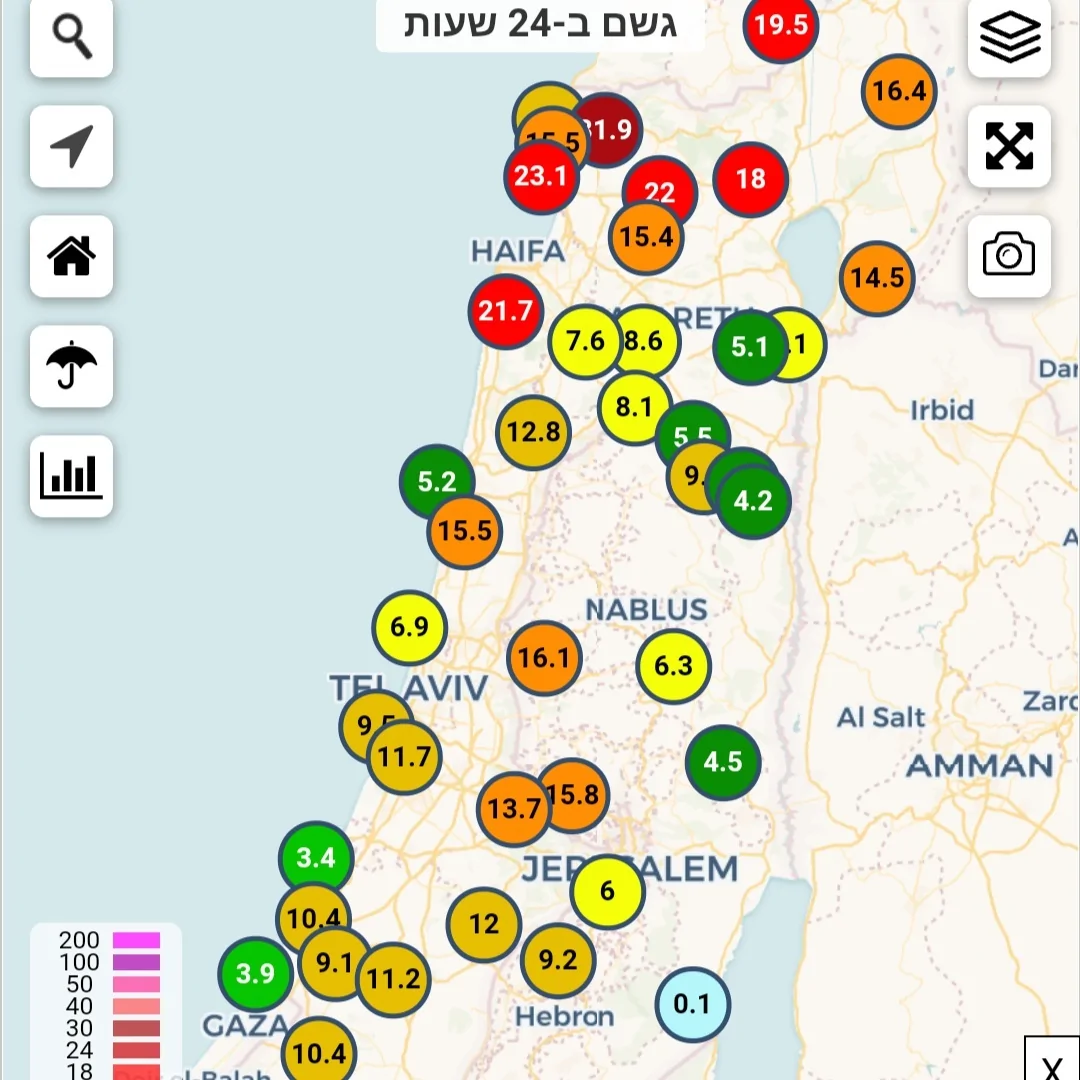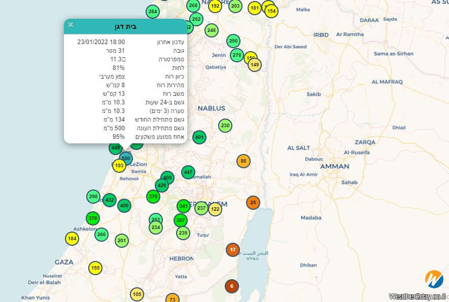 - כמויות משקעים – יום ראשון 23-24/1/2022