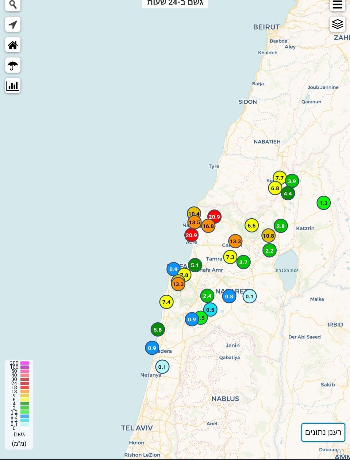 והנתונים של הכמויות שהיא מודדת היום מדוייקים , חסרים לה כמה עשרות ממ מתחילת החורף