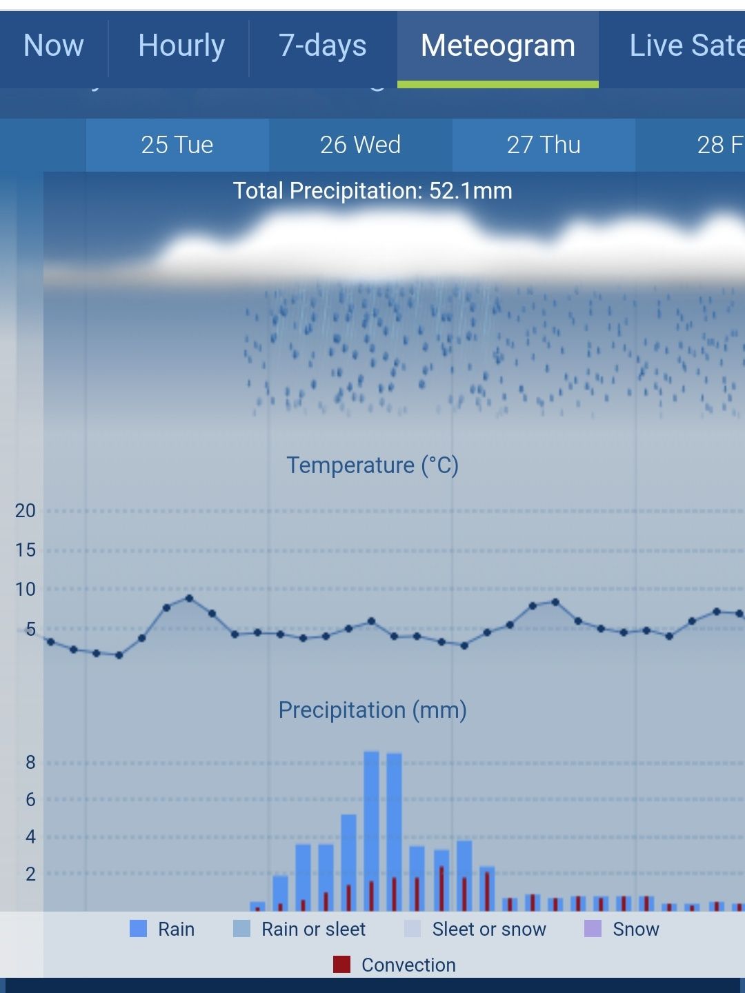 רואים ששיא הקור יהיה מחר לפנות בוקר, אבל אז יהיה יבש. בחמישי בערך ב-3 בלילה ייתכן שיהיה מספיק קר לשלג, אבל אם אתה רוצה שלג בטוח תצטרך כנראה לעלות להר אדיר