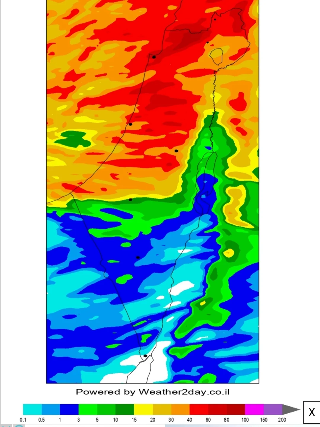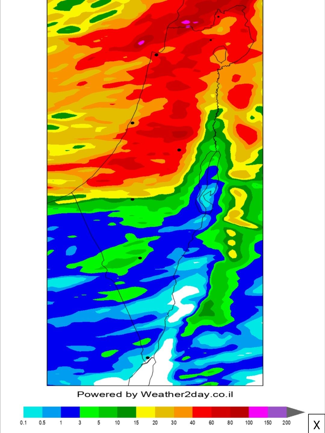 יום רביעי ( 26.01.22 ) : גשום וסוער, בבוקר ירד גשם בעיקר במישור החוף ובצפון , לקראת צהריים/ אחה"צ הגשם יחל להתפשט למרכז , ולקראת הערב גם לצפון הנגב, בערב גם במרכז הנגב יש סיכוי לגשם מקומי, ביום זה חשש חמור ביותר לשיטפונות בכל נחלי הדרום מדבר יהודה וים המלח, והצפות מקומיות בערי ישראל. הטמפ' ירדו ירידה ניכרת ויהיה קר מאוד, הרוח דרום מערבית מתונה עד ערה עם משבים עזים עד סוערים, בבוקר שלג ירד בחרמון ובצפון רמת הגולן מעל 1000 מטר, משעות הצהריים רום השלג יחל לרדת בצפון הארץ ל 800 מטר , ואחה"צ גם בהרי המרכז מעל 1000 מטר ירד שלג, בערב ובלילה צפוי רום השלג לרדת עוד ושלג ירד מגובה 700 מטר לערך בצפון ו 800 מטר במרכז( רום השלג המצוין כאן הוא הרום שממנו יערם השלג).