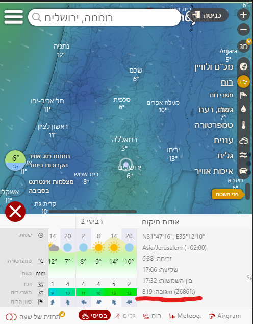 - WINDY מראה את גובה המדוייק לפי המיקום של כל אחד יצחק מירושלים