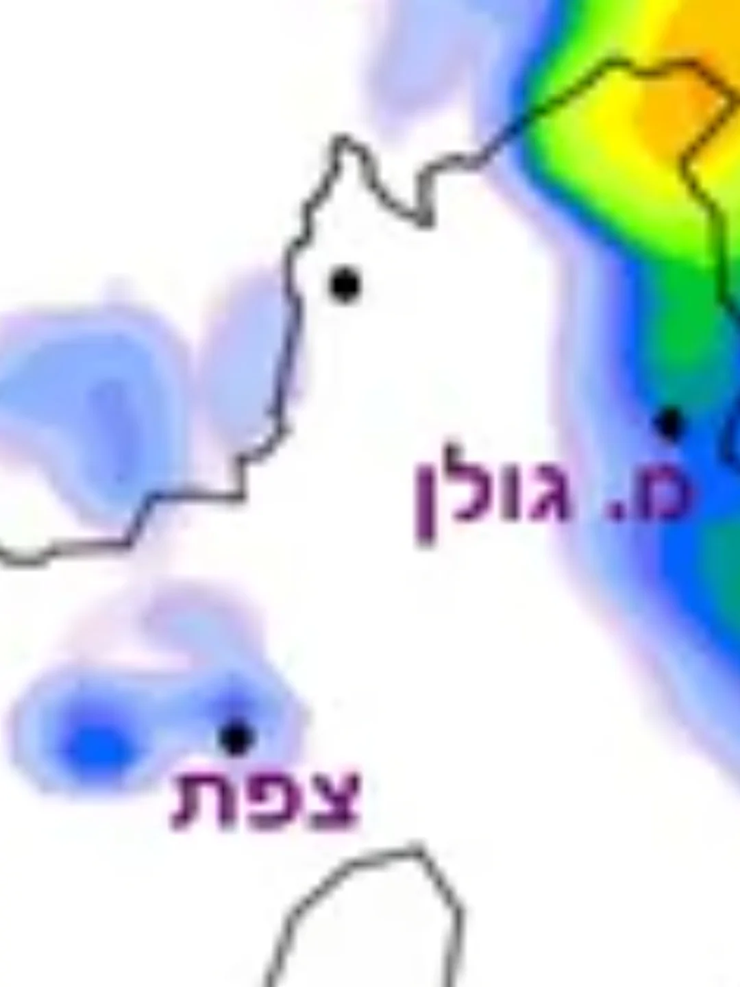 אין צפי שלג לאיזורים מעבר לסביבת האיזורים המצויינים בתחזית.