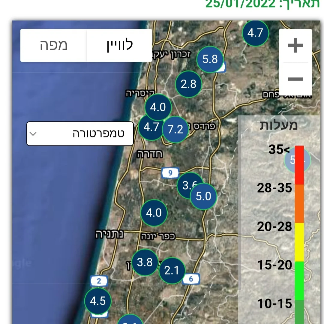 - אולי סיכוי קל, באיזור עוספיא. אתמול בלילה היה שם 1 מעלות ארץ ישראל היפה