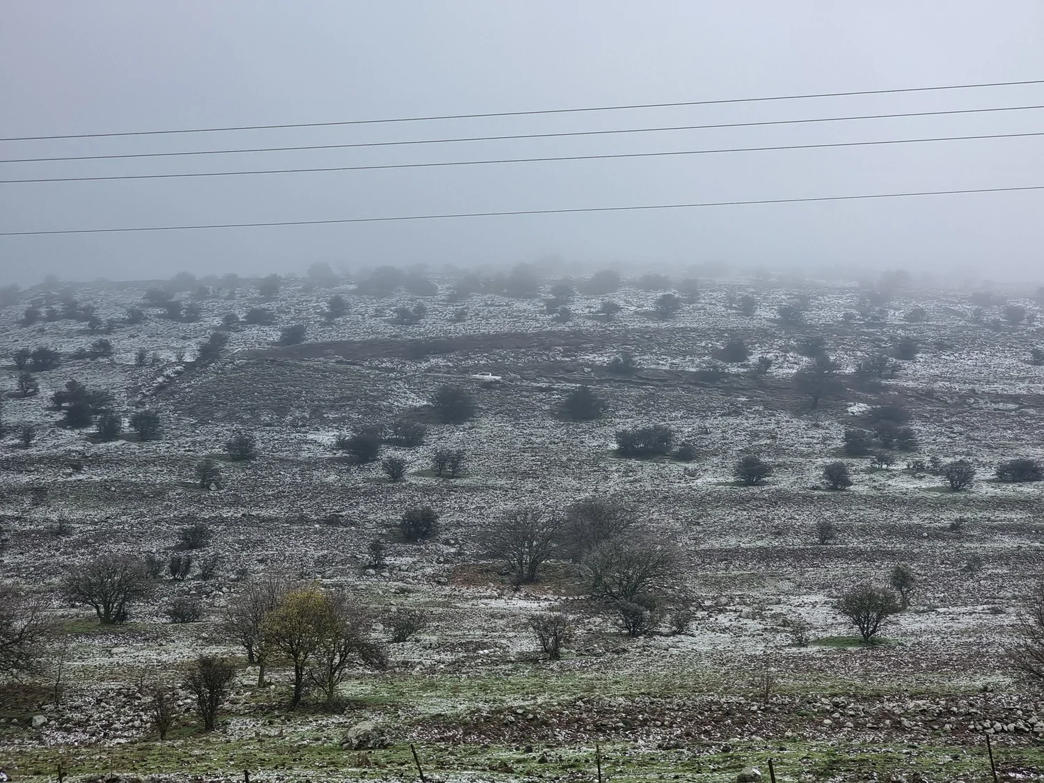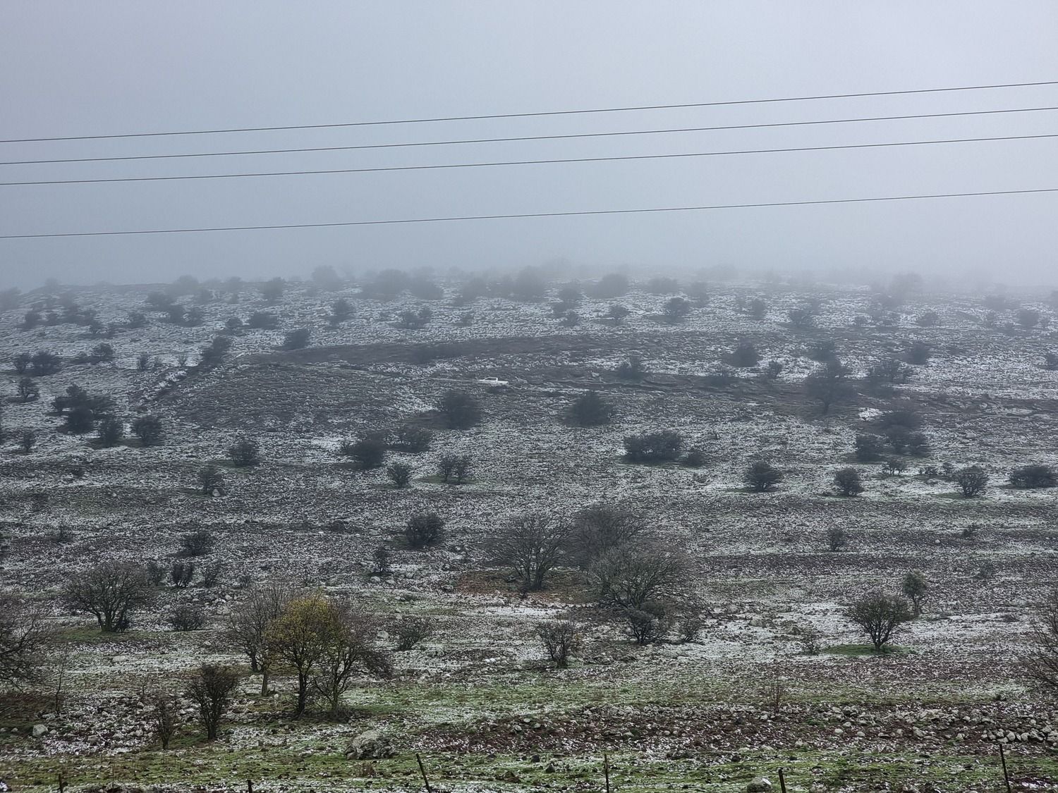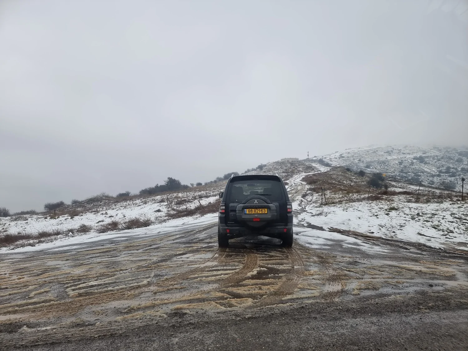 כמות השלג על הקרקע יורדת ודרומה מאלרום אין שלג. בהר אביטל ליד מרום גולן כיסוי שלג דק. כאן יש רוח עכשיו. הצילומים מהאוטו.