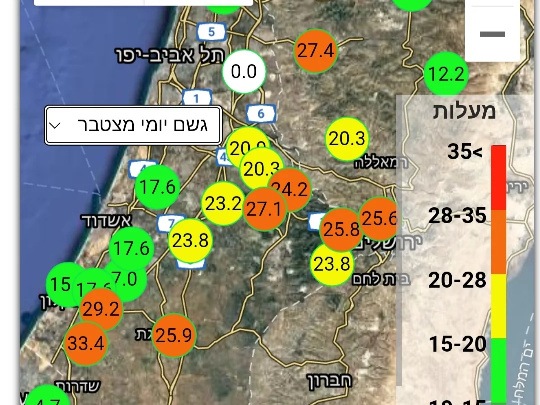 מהלילה עד עכשיו 37 מ''מ. המוזר שיש רוח מזרחית ערה
