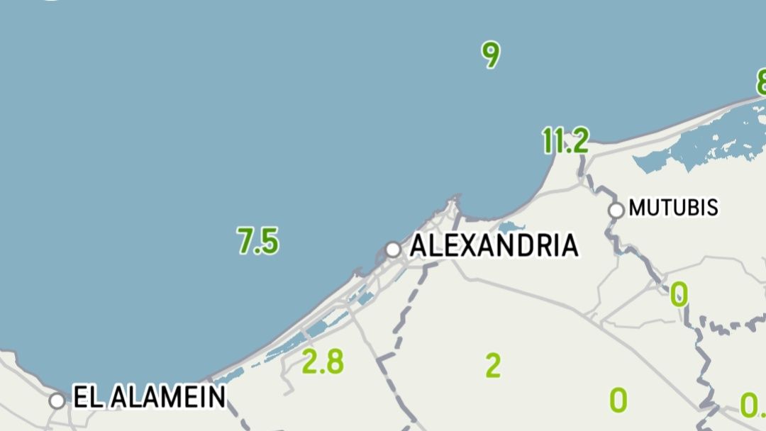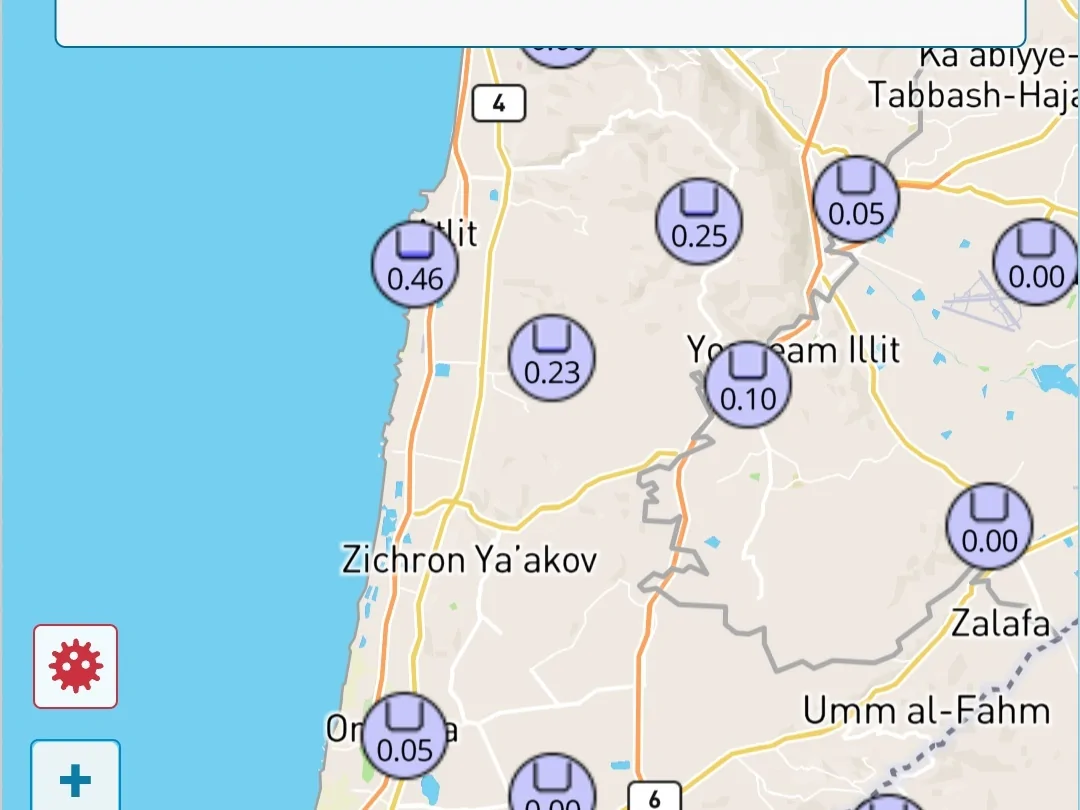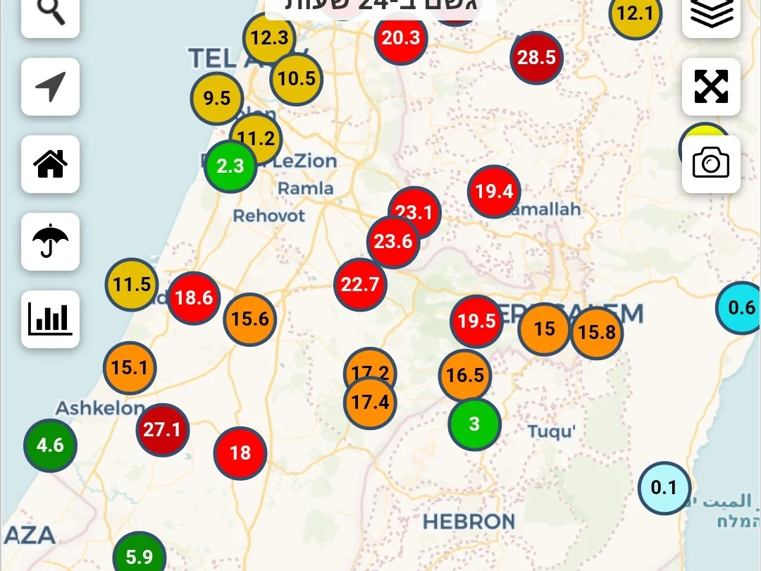 אלפיס נכנסה עם גשמים במישור החוף הצפוני. הכמויות במילימטרים: