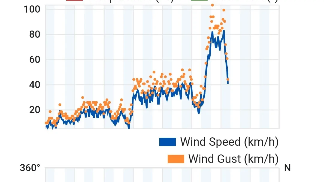 באתרי מזג אויר כתוב 11 רד רוחות.