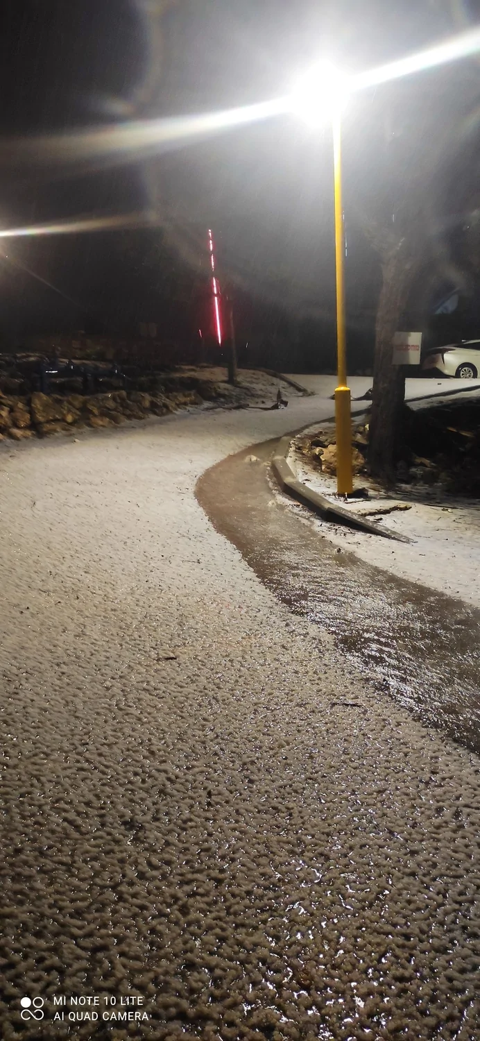 לפני שעה בערך, משקעי קרח / שלג באוויר ללא הערמות. טמפרטורה 0-1 כתלות במעבר ענן.