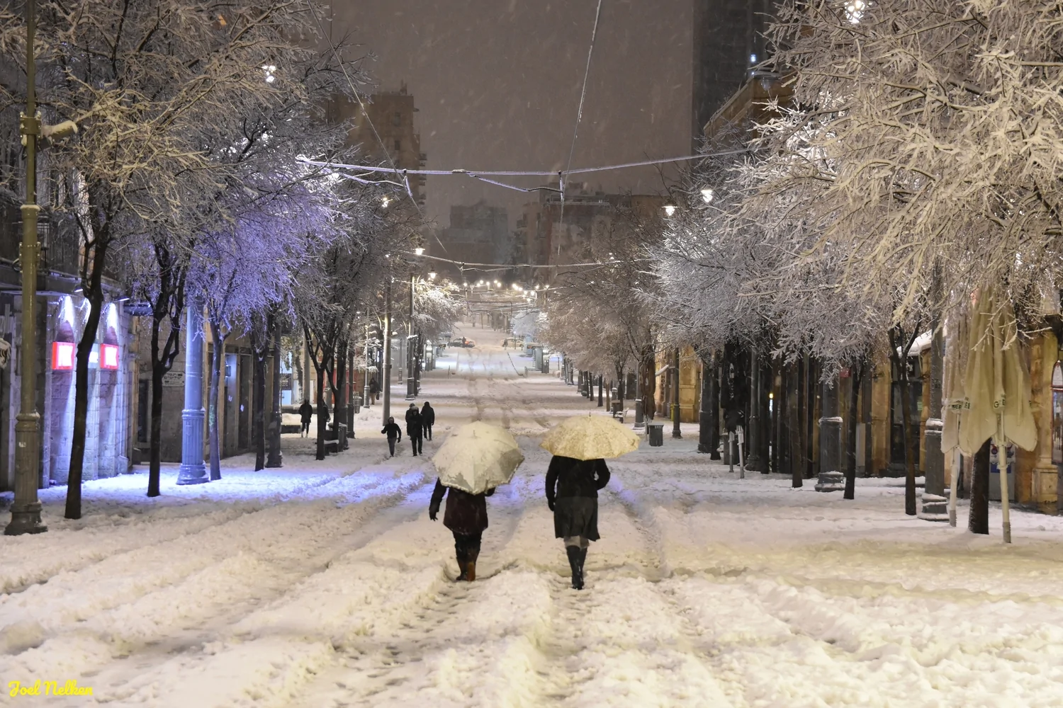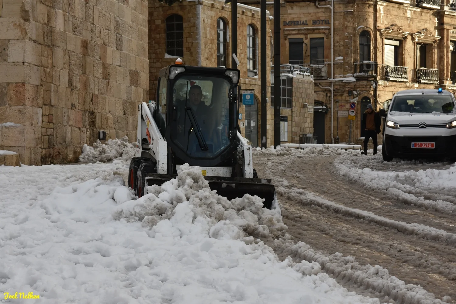 עברתי לידך כשצילמת את התמונה של הטרקטור שמפנה את השלג ליד שער יפו זה היה בערך בשעה 7:15 נכון?