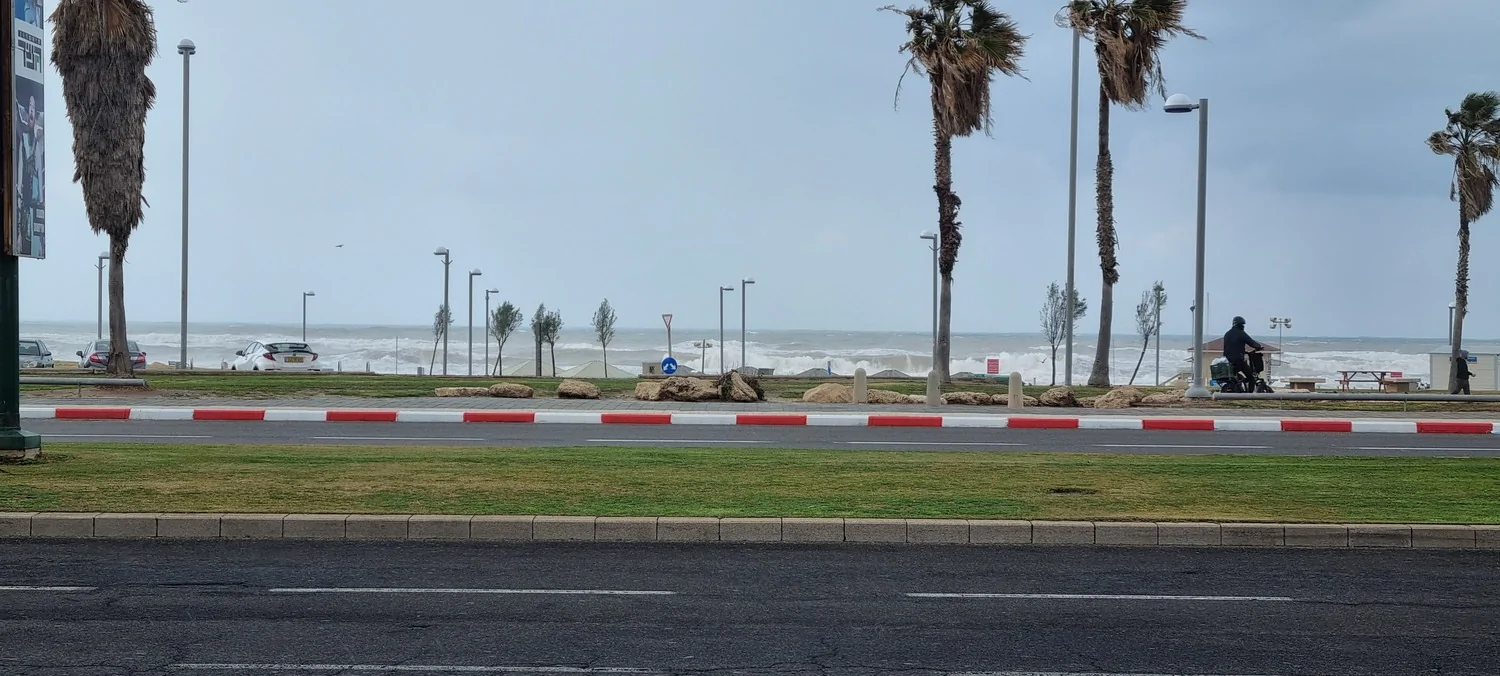 - בחוף תל אביב גשמים לפרקים ,רוח 40+קמש מערבית נועם
