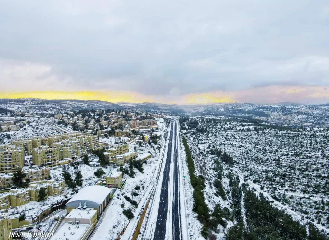 בתמונה אפשר לראות את מחלף שורש ואחריו עוד הרבה הרבה שלג.