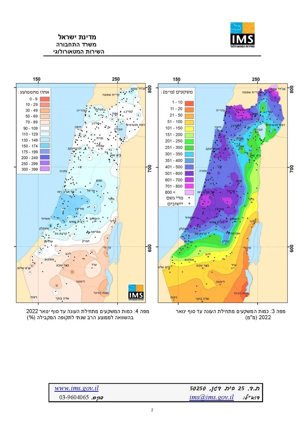 - משקעים מתחילת העונה ועד לסוף ינואר Weather2day