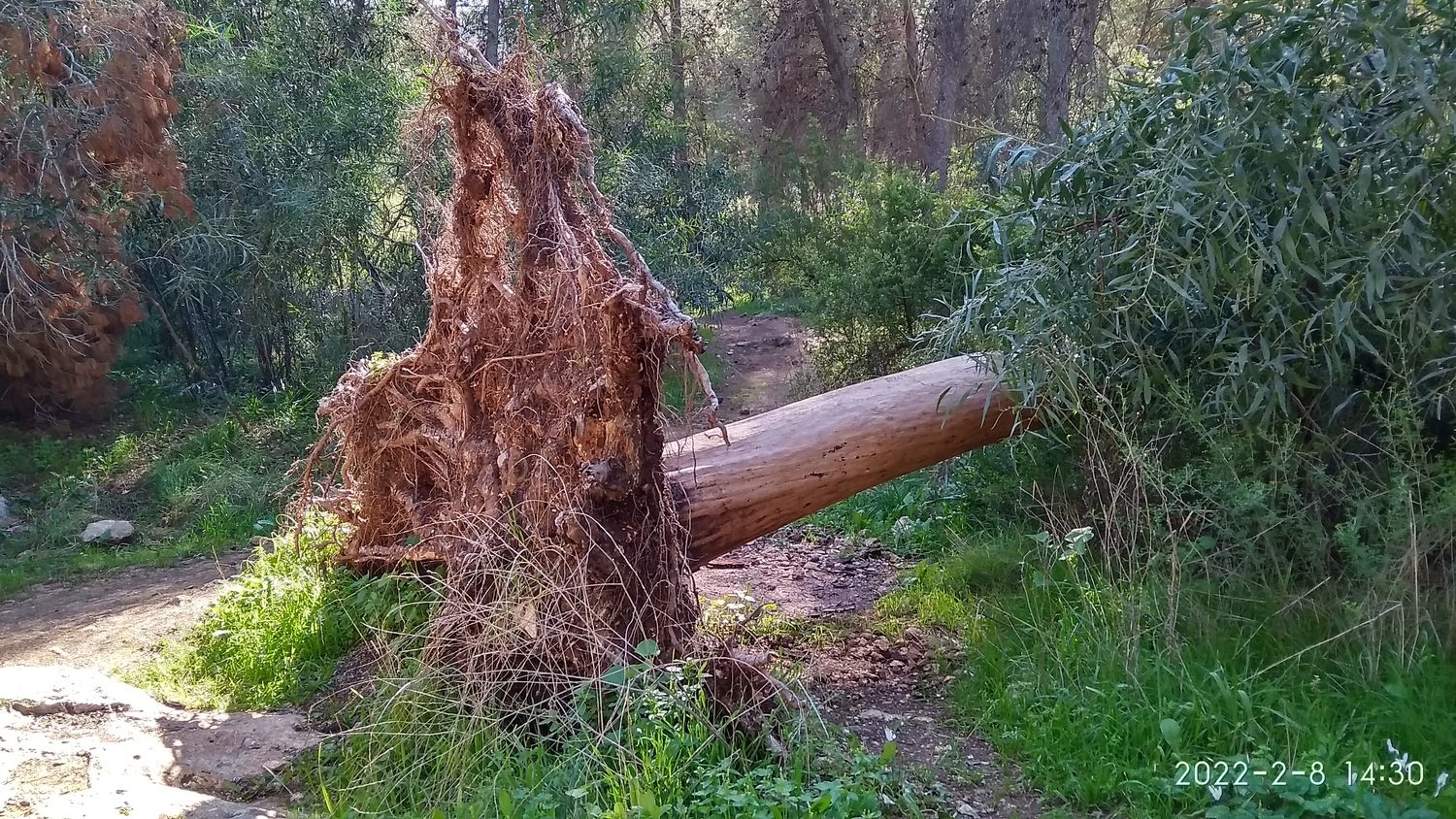 מזג אויר סוער מביא בעיקבותיו נזקים ליער בצורה של נפילת ושבירת עצים. במשך הזמן שהסתובבתי ברחבי היער ראיתי להערכתי מאות עצים שנפלו או נשברו. יש קטעים ביער שניראים כאילו עברה שם סופה ויש בהם ריכוז גבוה של עצים שנפלו ונעקרו או נשברו. (יש כאן שרשור נוסף של מימי על נזקי אלפיס לעצים בהרי ירושלים).