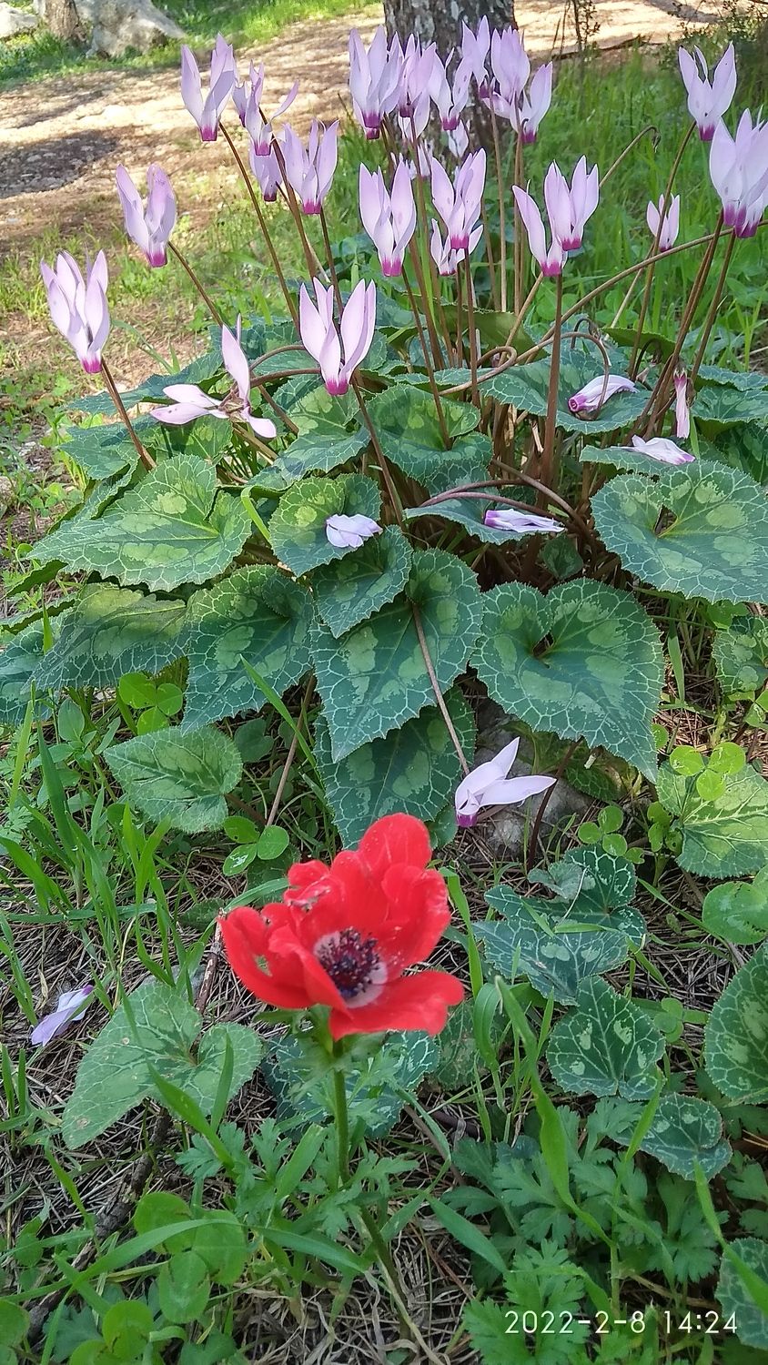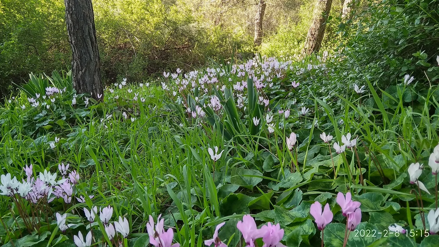 אומנם היער פורח כולו במגוון של כלניות מכל הצבעים והסוגים וכן של רקפות, אבל פה ושם אפשר למצוא גם פריחה של מיני פרחים אחרים. (להזכיר- אנחנו בעיצומו של החורף והפריחה כעת היא של סוגי פרחים שפורחים בחורף. פריחת האביב העשירה תתחיל כפי הנראה רק בעוד כחודש).