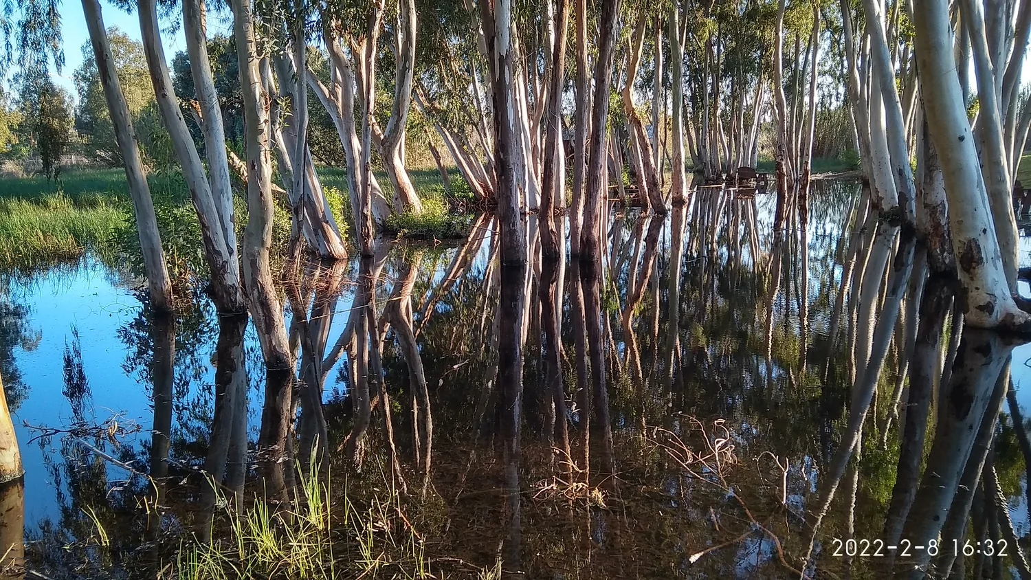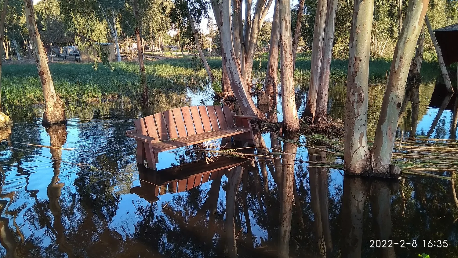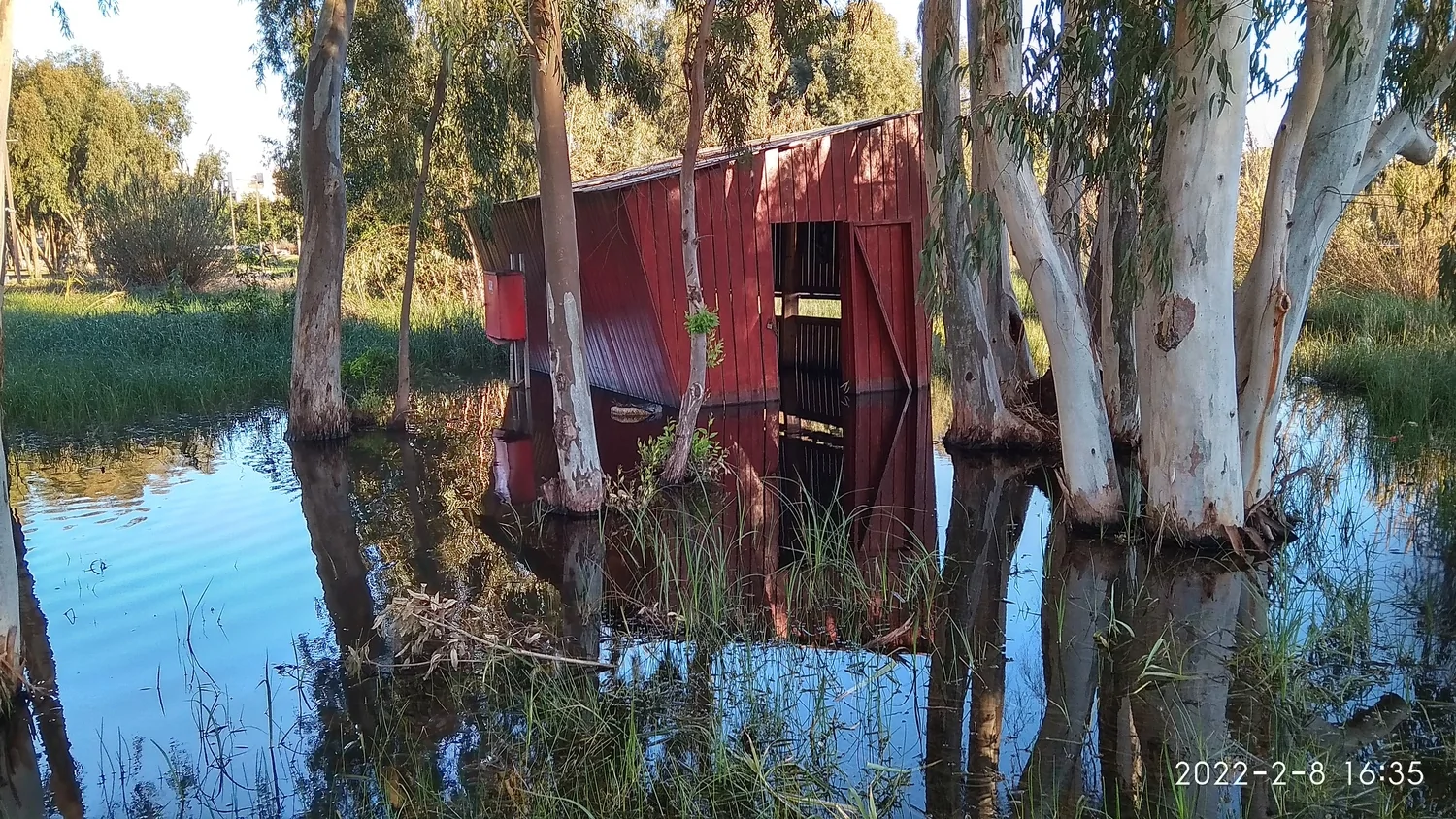 מסתור/תחנת תצפית על הציפורים ועופות המים הוצף במי השיטפון, כך שבמקום שבני אדם יעמדו בתוך המיסתור ויצפו בעופות, כרגע מי שנמצא בתוך המיסתור הם העופות שצופים על בני האדם...