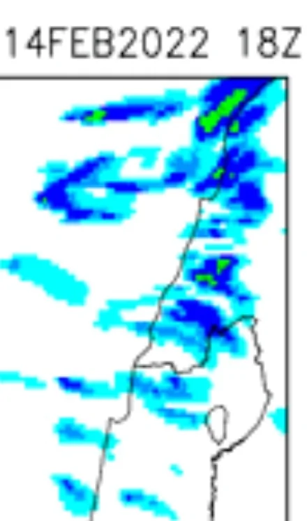 יום שני ( 14.02.22 ) : בהיר עד מעונן חלקית עם ירידה בטמפ' של 4-5 מ"צ , הטמפ' יהיו מעט נמוכות מהרגיל לעונה. הרוח מערבית עד צפון מערבית קלה עד מתונה. משעות אחה"צ אל תוך הלילה יתכנו טפטופים/גשם נקודתי קל מאוד בעיקר בצפון הארץ.