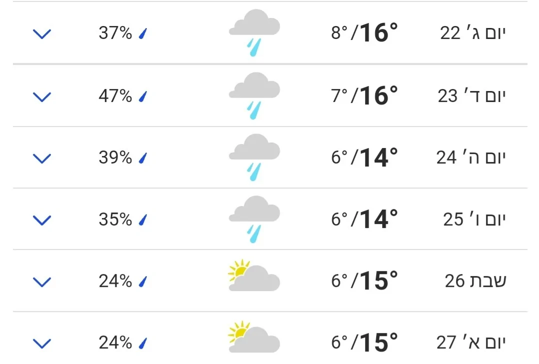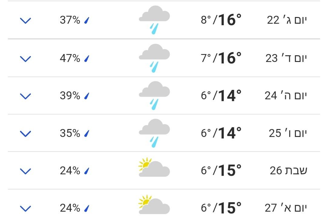 - התחזית מיום שישי 11.02.22 ועד יום רביעי 16.02.22 - קוזוקרו אבי