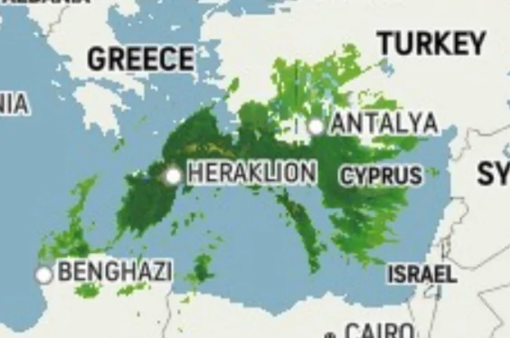- מצב העננים עכשיו מעל הים התיכון | גשם מקומי בים התיכון דובי